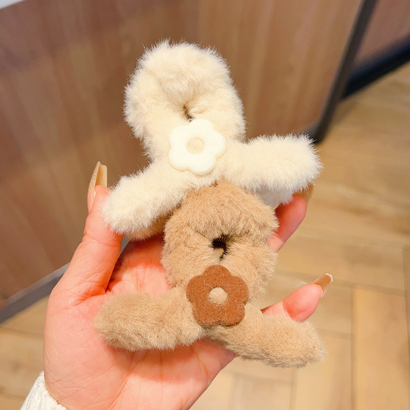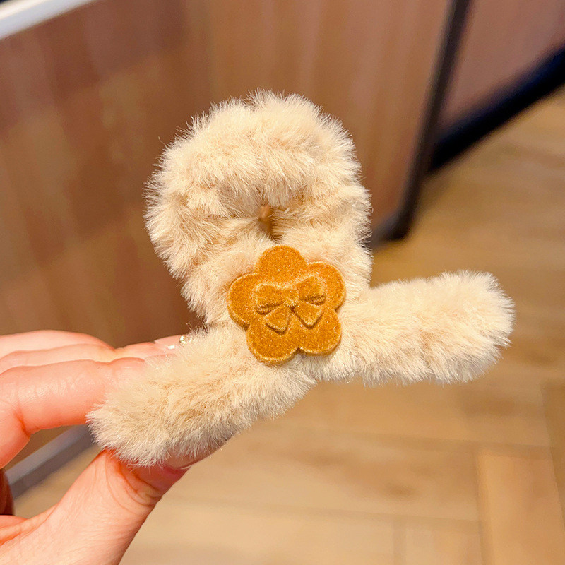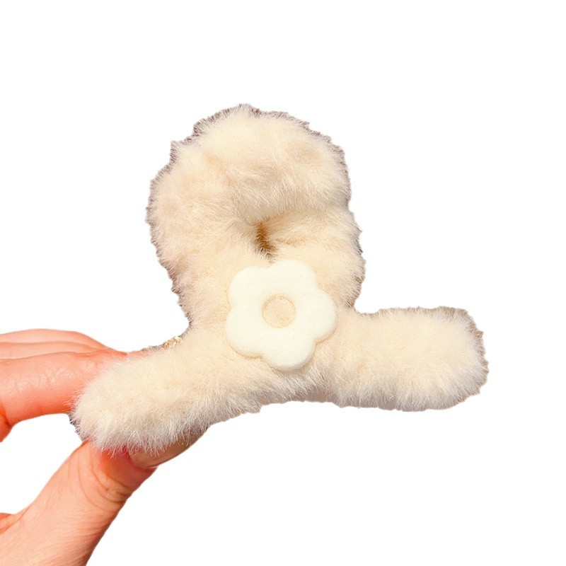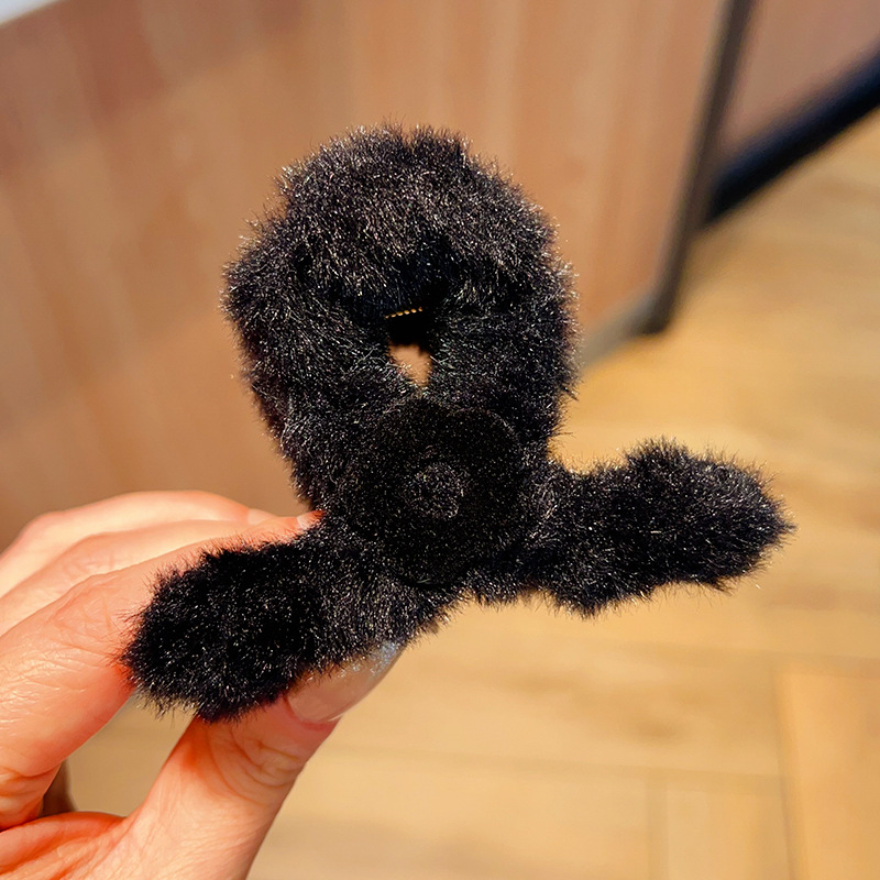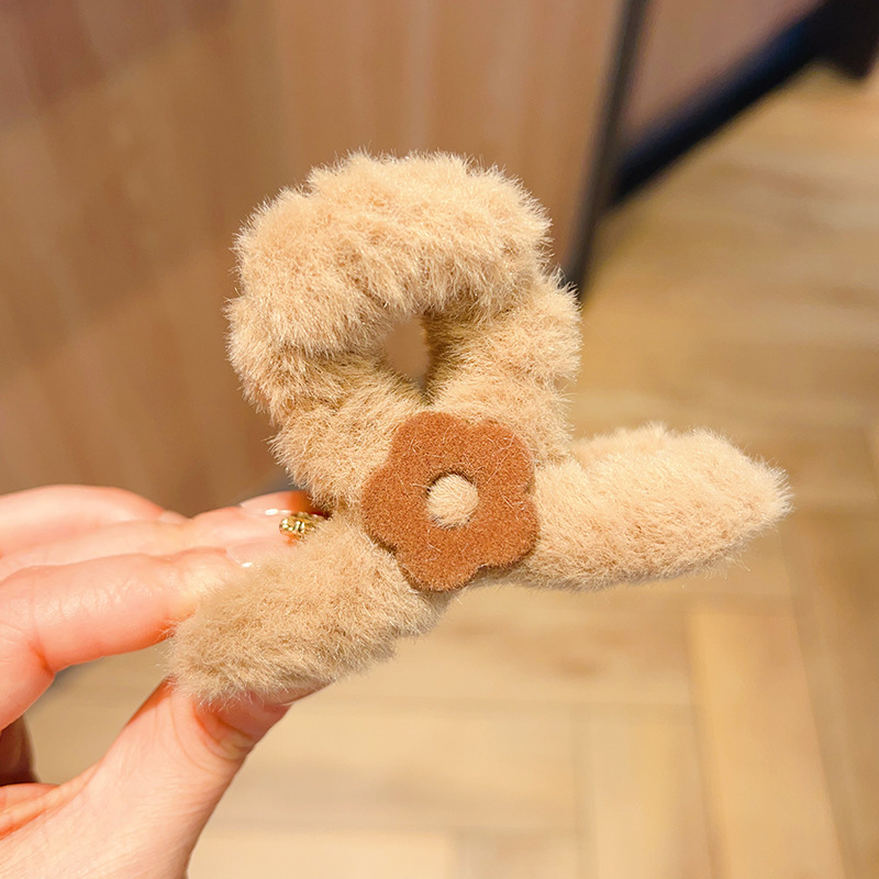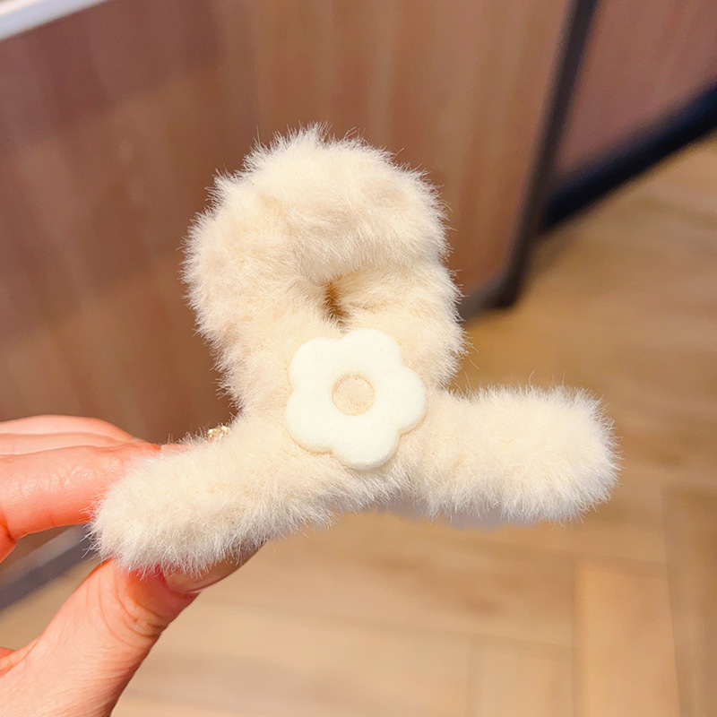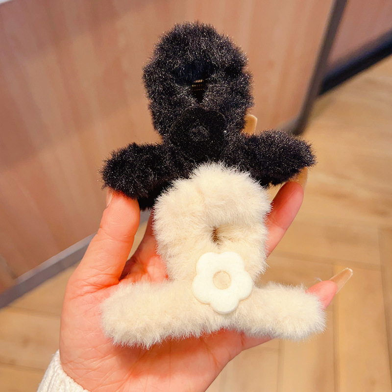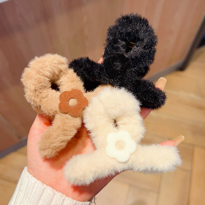 autumn and winter medium flower plush grip female back head hairy hair clips temperament updo shark clip hair clip headdress