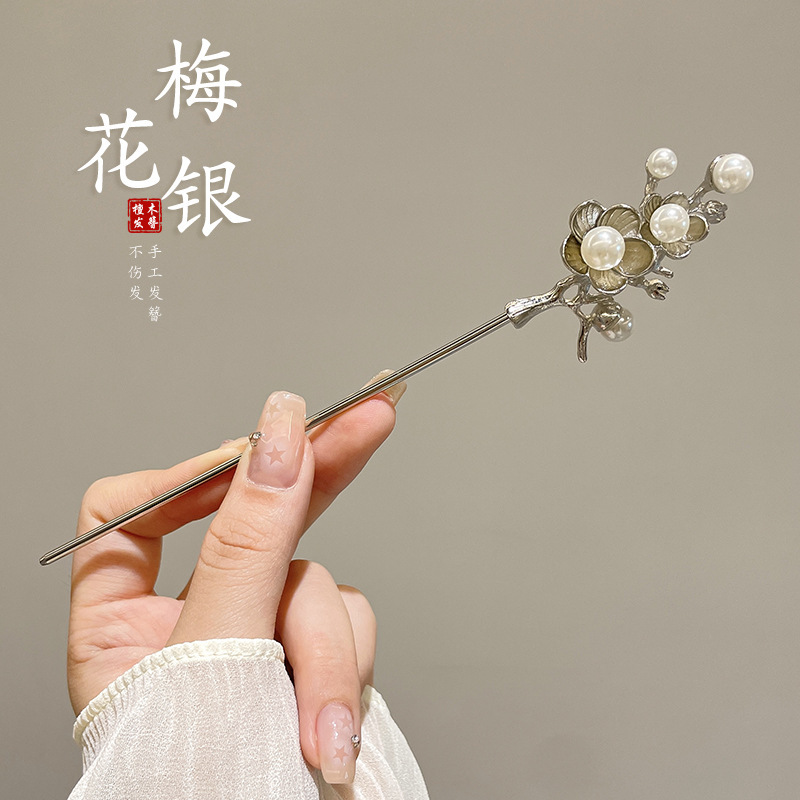 27# pearl lotus hairpin-silver (bag)