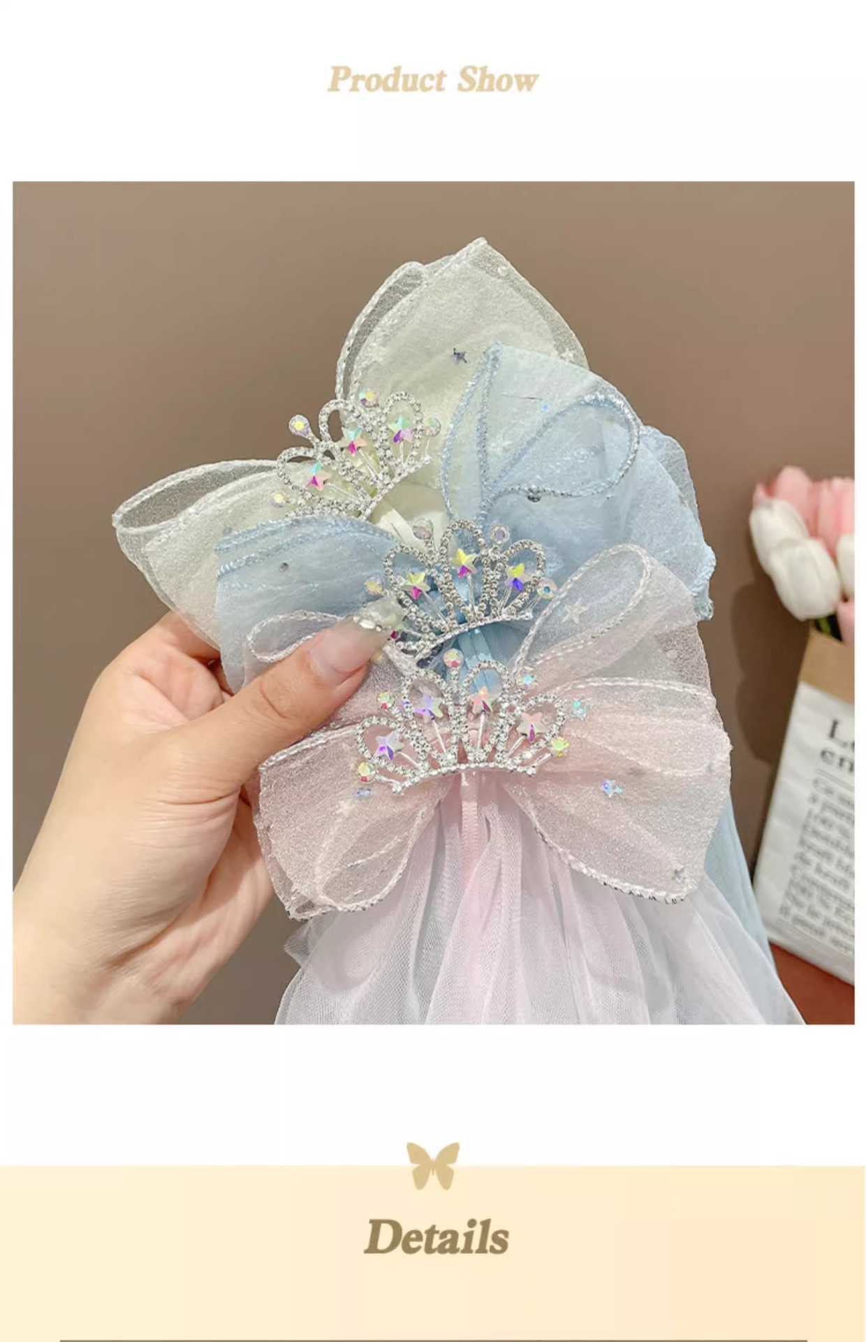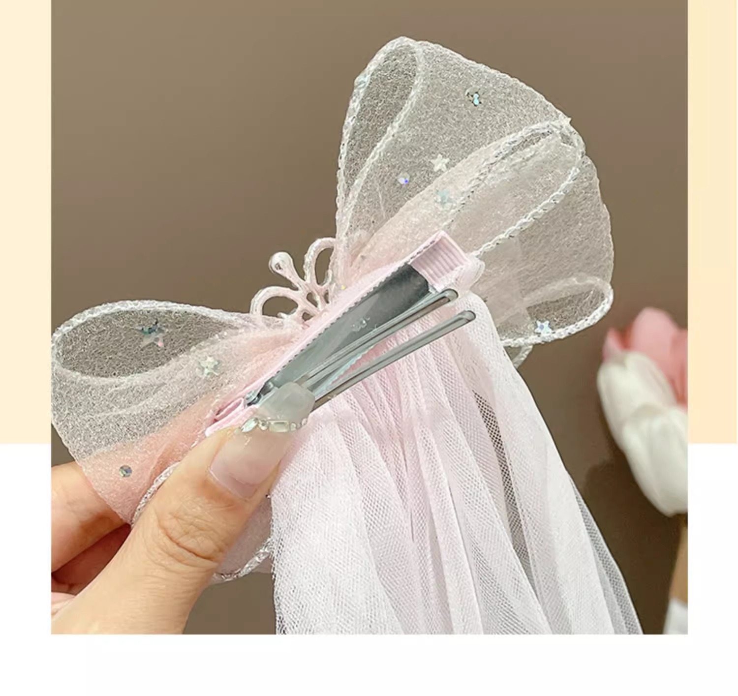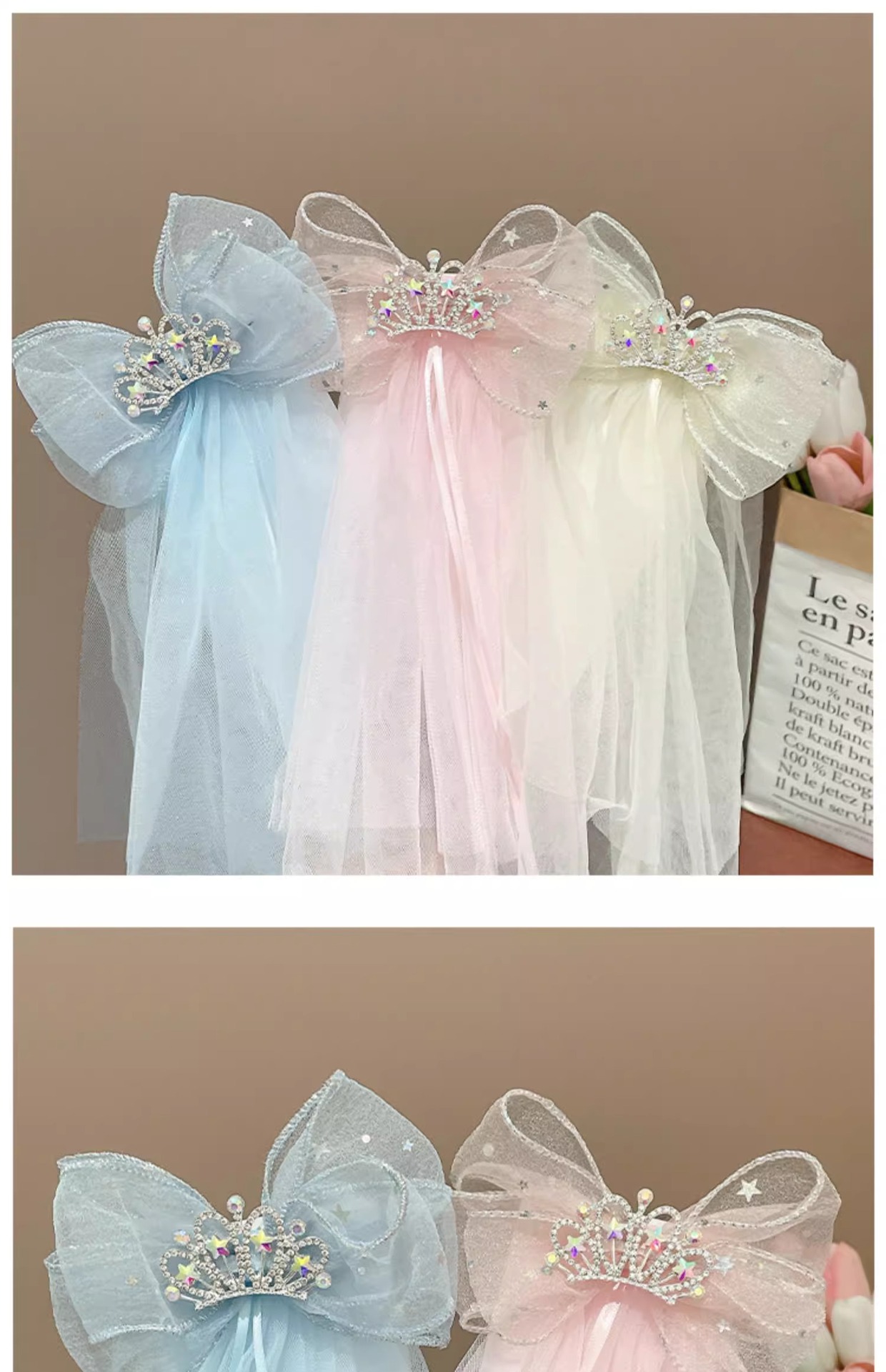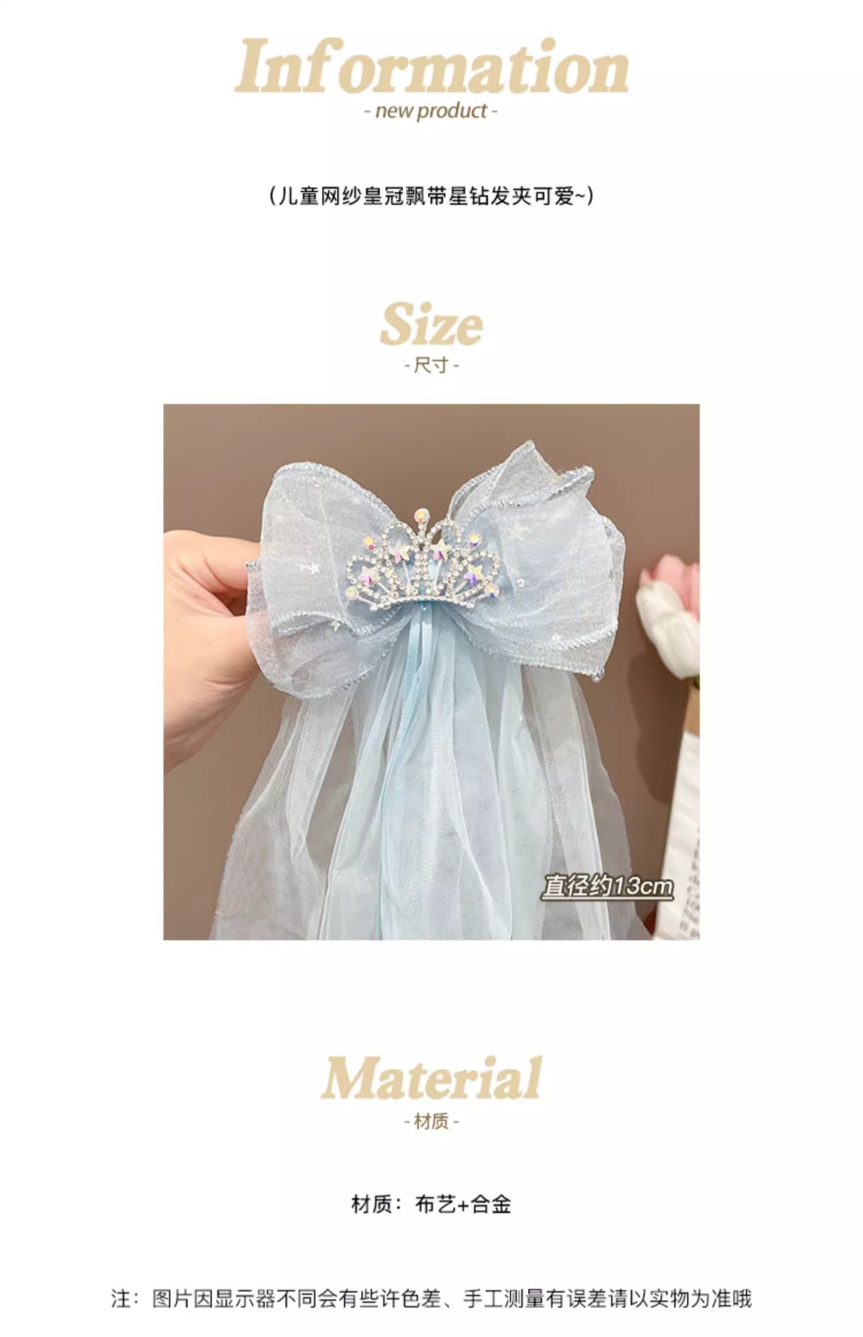 3# pink mesh crown ribbon star diamond barrettes#