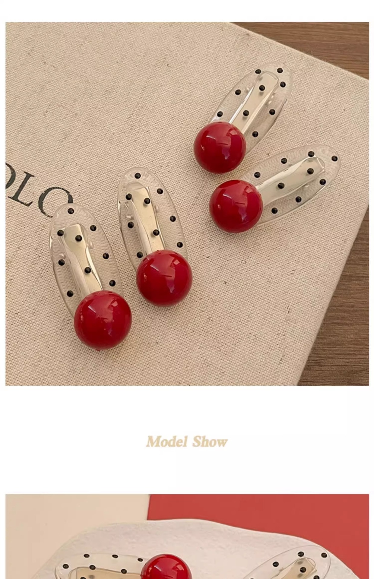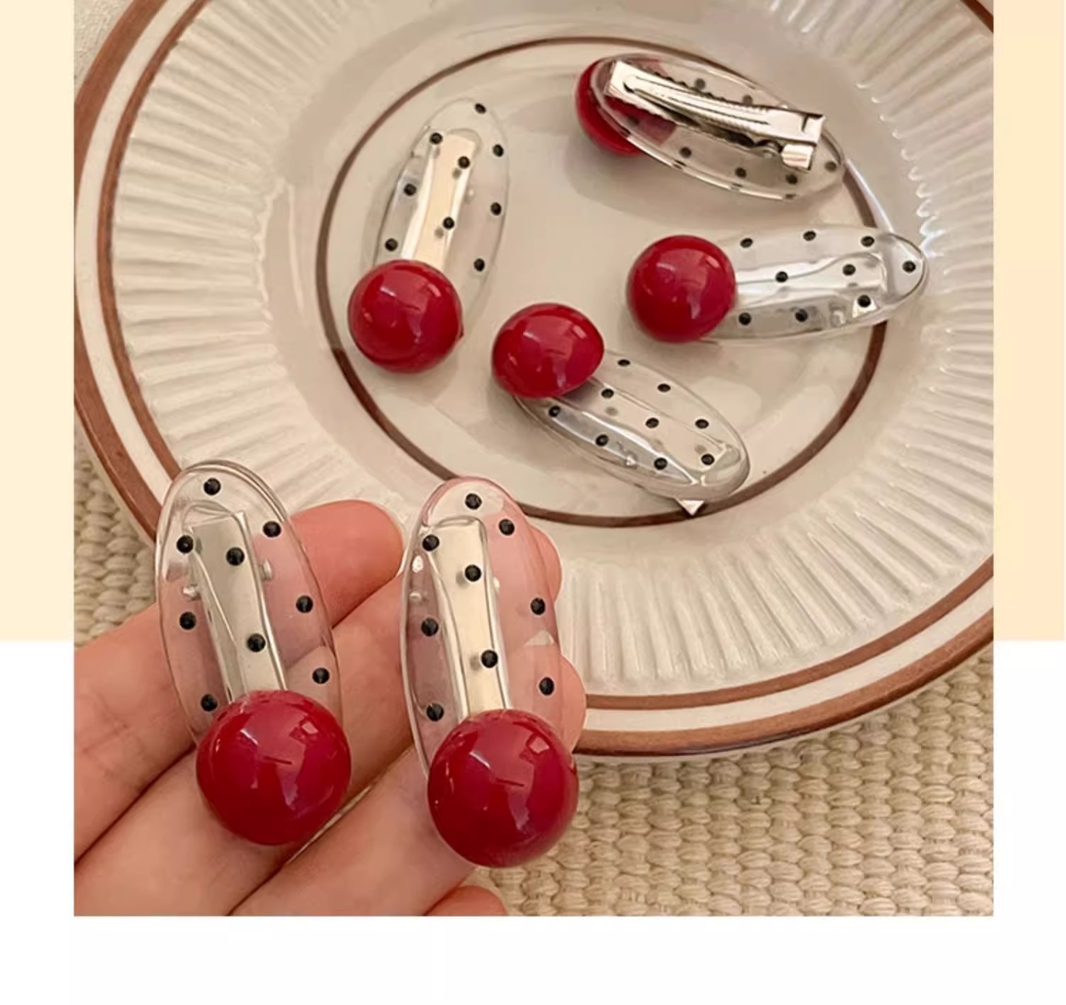 1# red pearl a pair of hairclips#