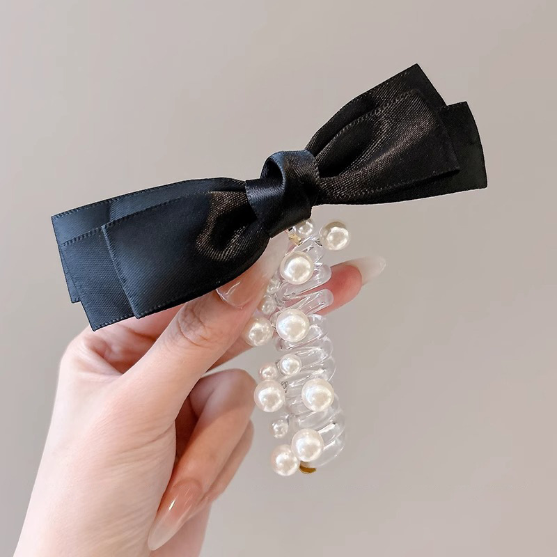 3#黑色3层蝴蝶结白珠
