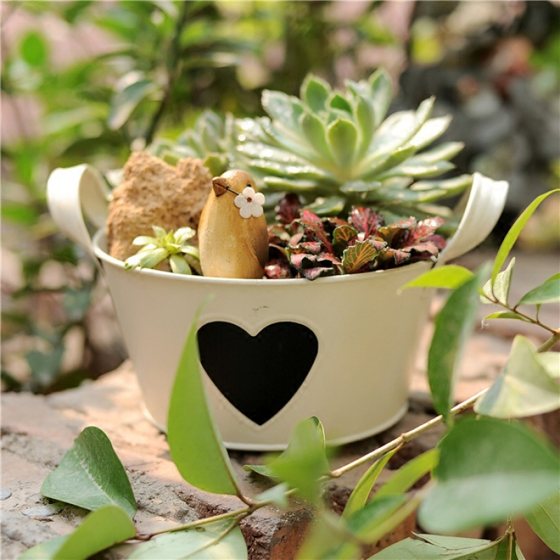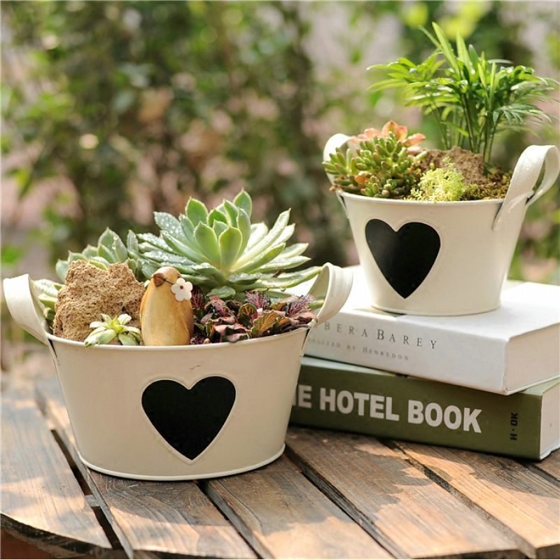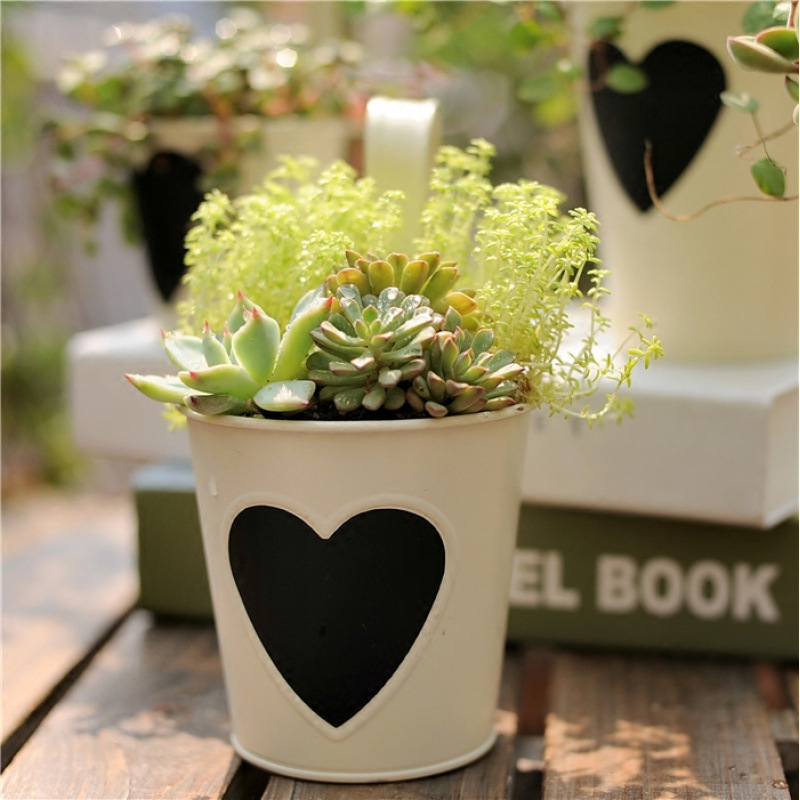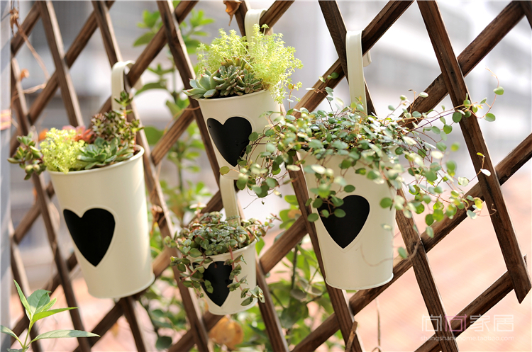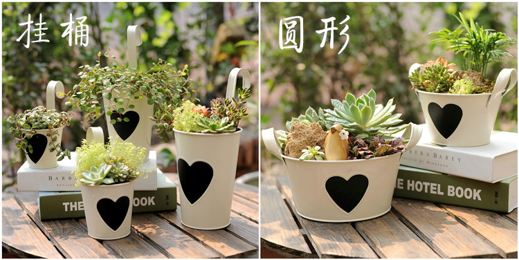 【掌柜说】Hanging on the fence, in the hedge... the pots of the flowerbed.Black heart decoration, it's also a small blackboard, you can write with chalk!!!This product is sold as a tin-plate flowerpot and does not include plants or other accessories.