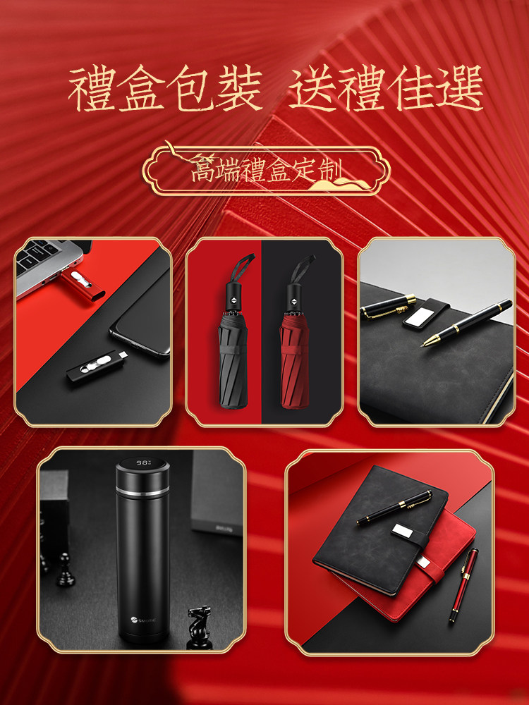 red gift box 5-piece set (luxury red ordinary style + notebook + pen + u disk + umbrella)
