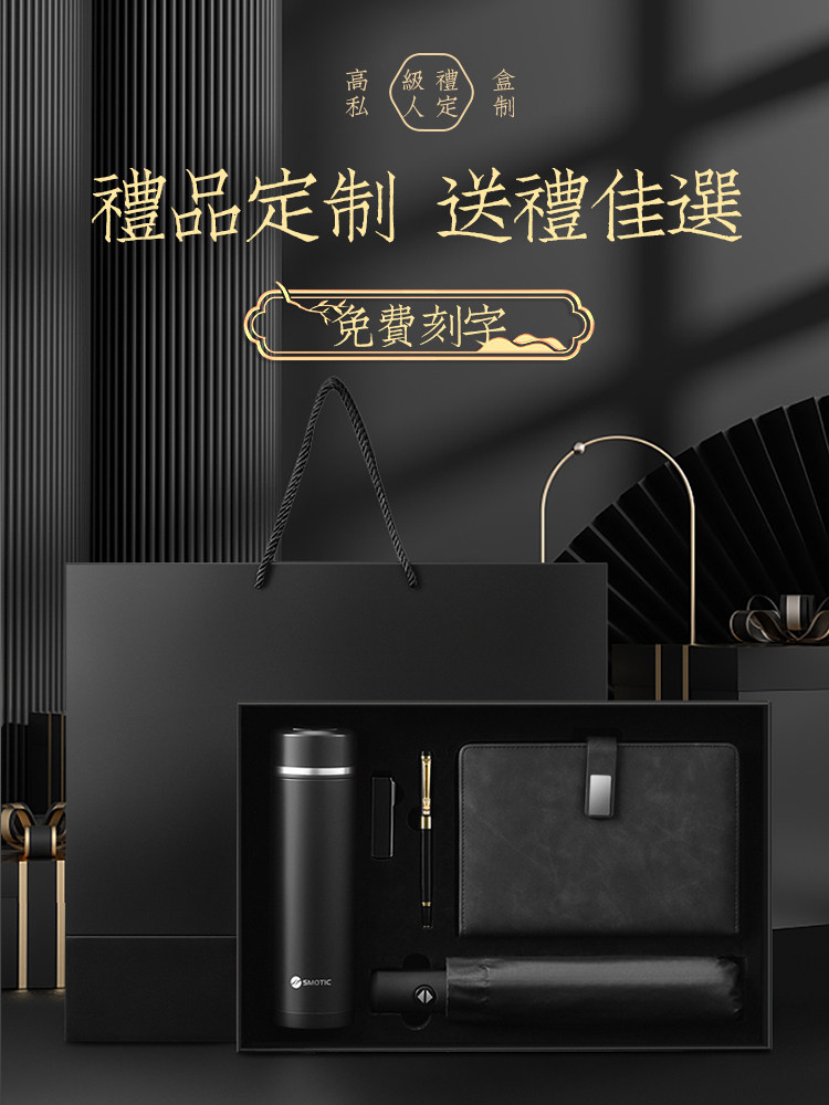 black gift box 5-piece set (elegant white ordinary style + notebook + pen + u disk + umbrella)
