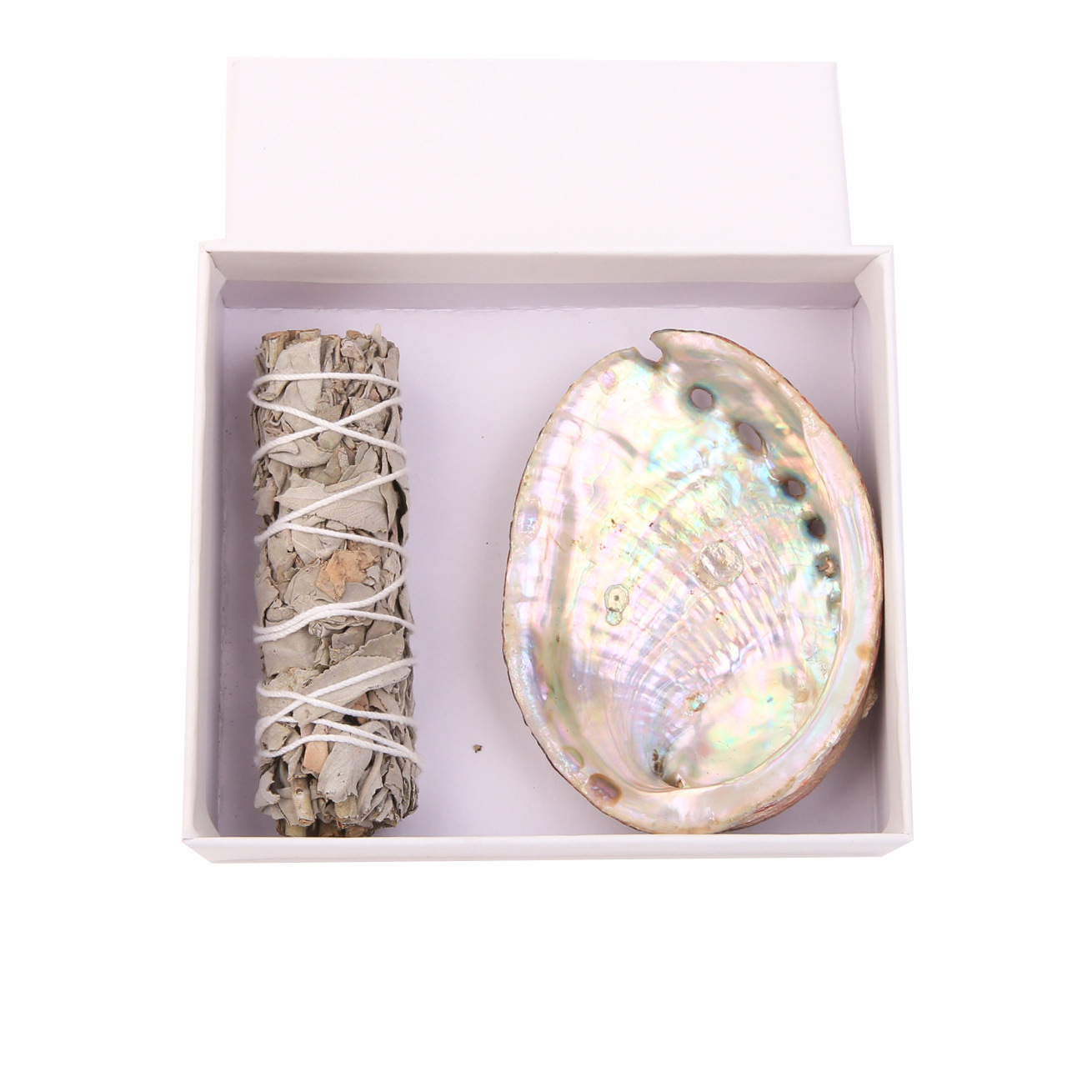 polished australian white abalone + base +4 grass +2 holy wood + turkey feather