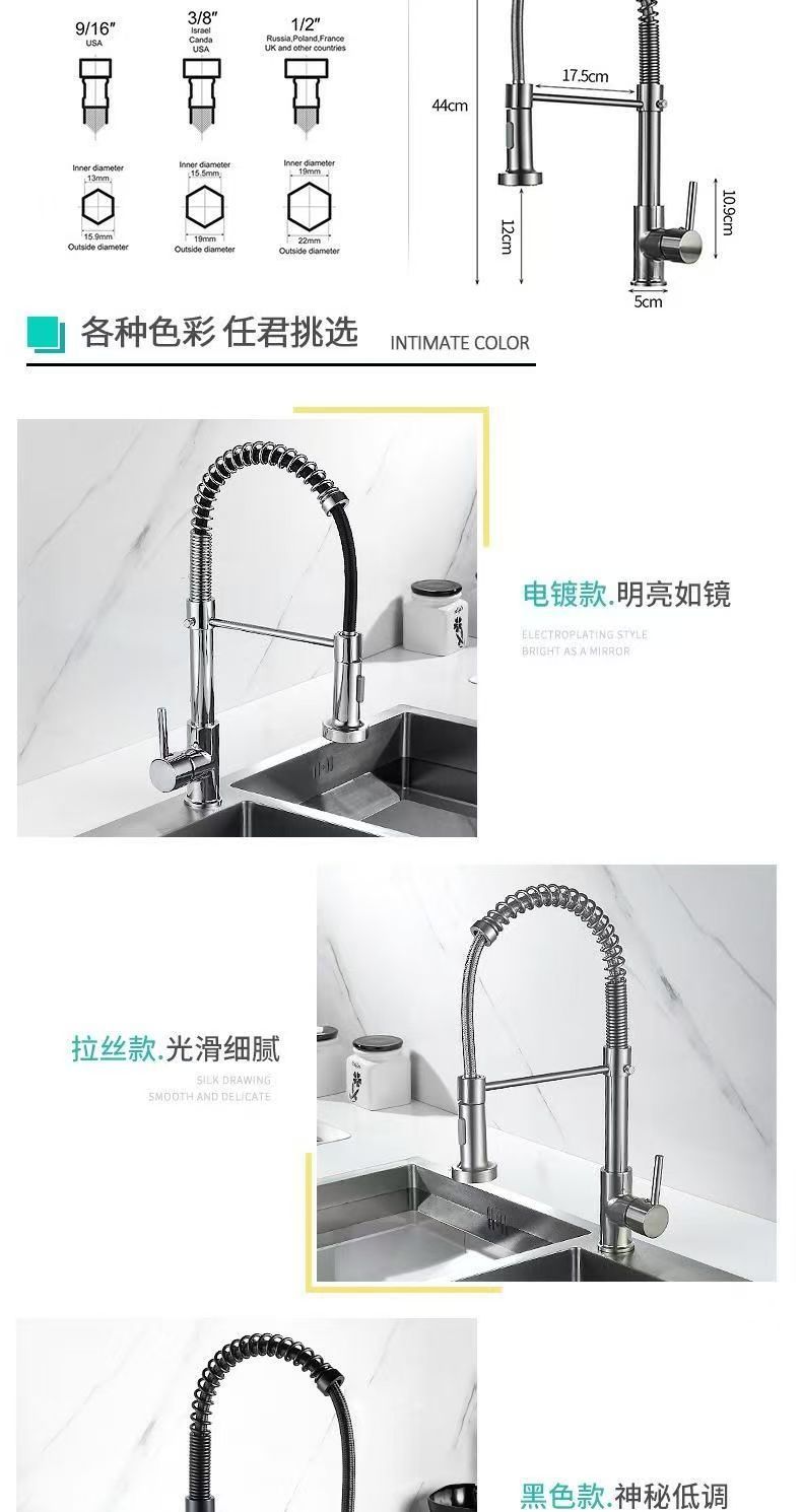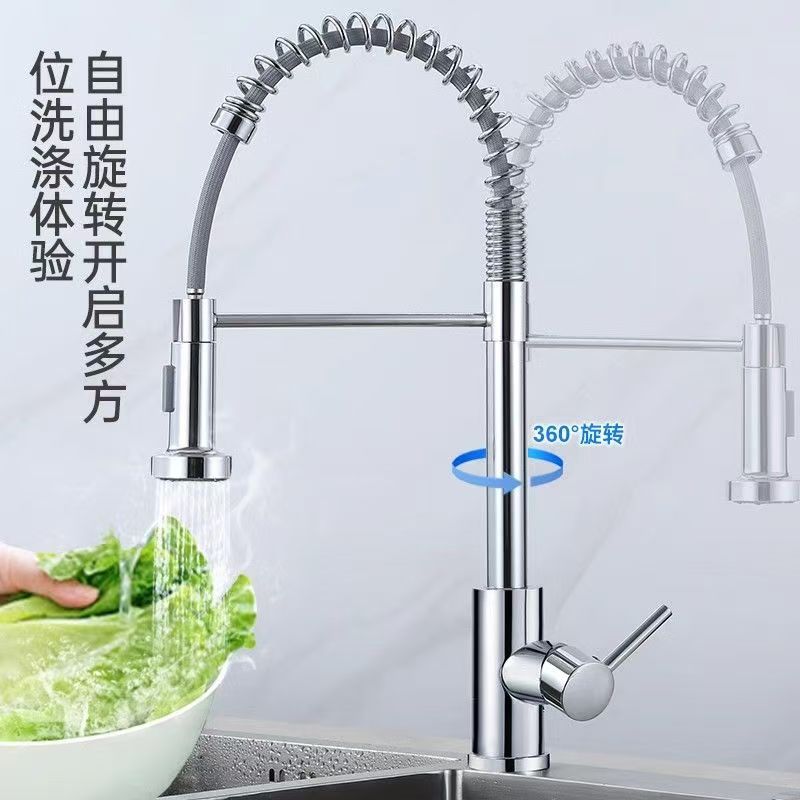 cross-border exclusive spring kitchen faucet pull-out household retractable rotating hot and cold washing basin sink faucet