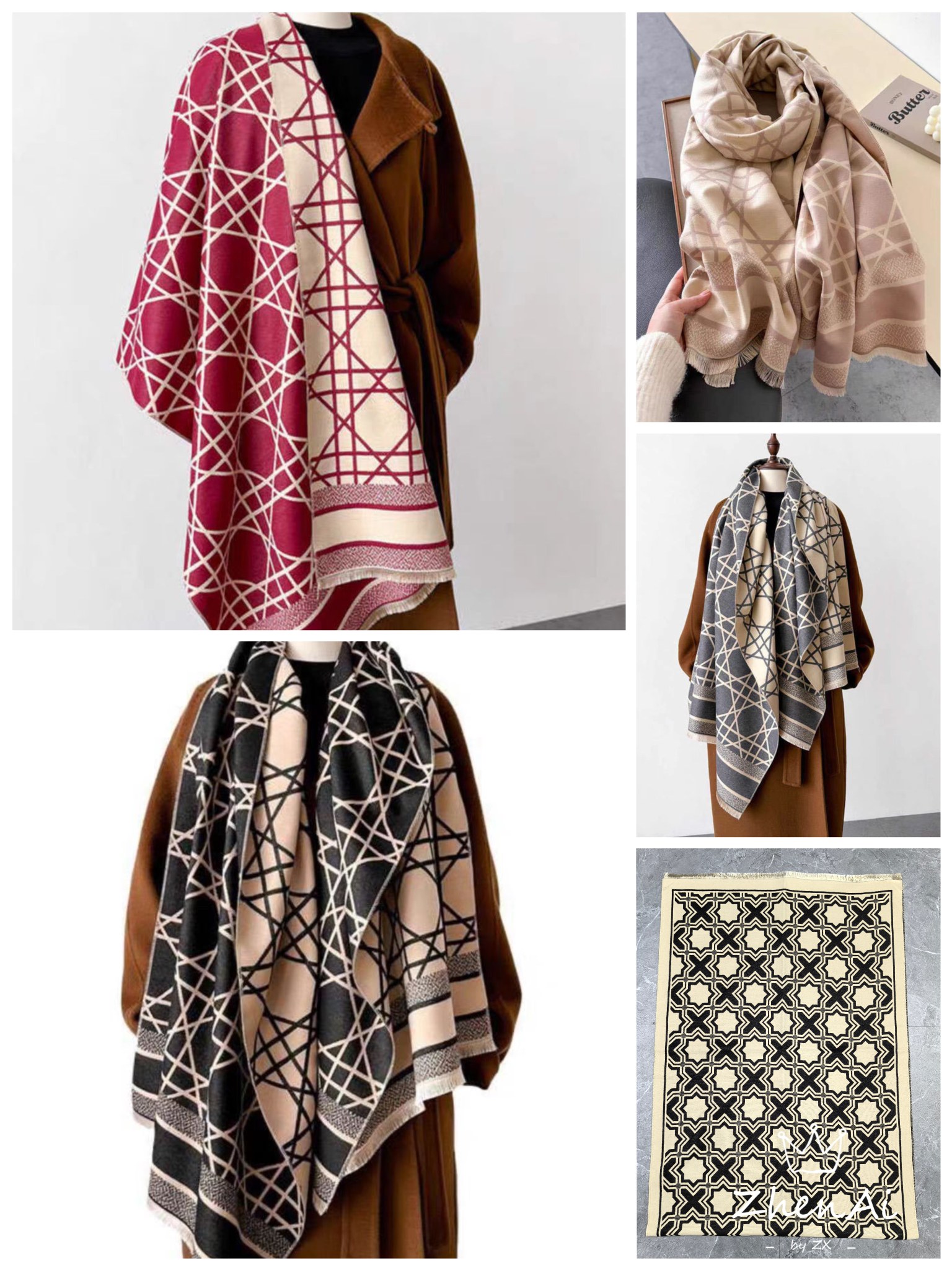 new high-speed jacquard hexagonal plaid cross-border scarf wholesale e-commerce live supply chain supply in stock scarf