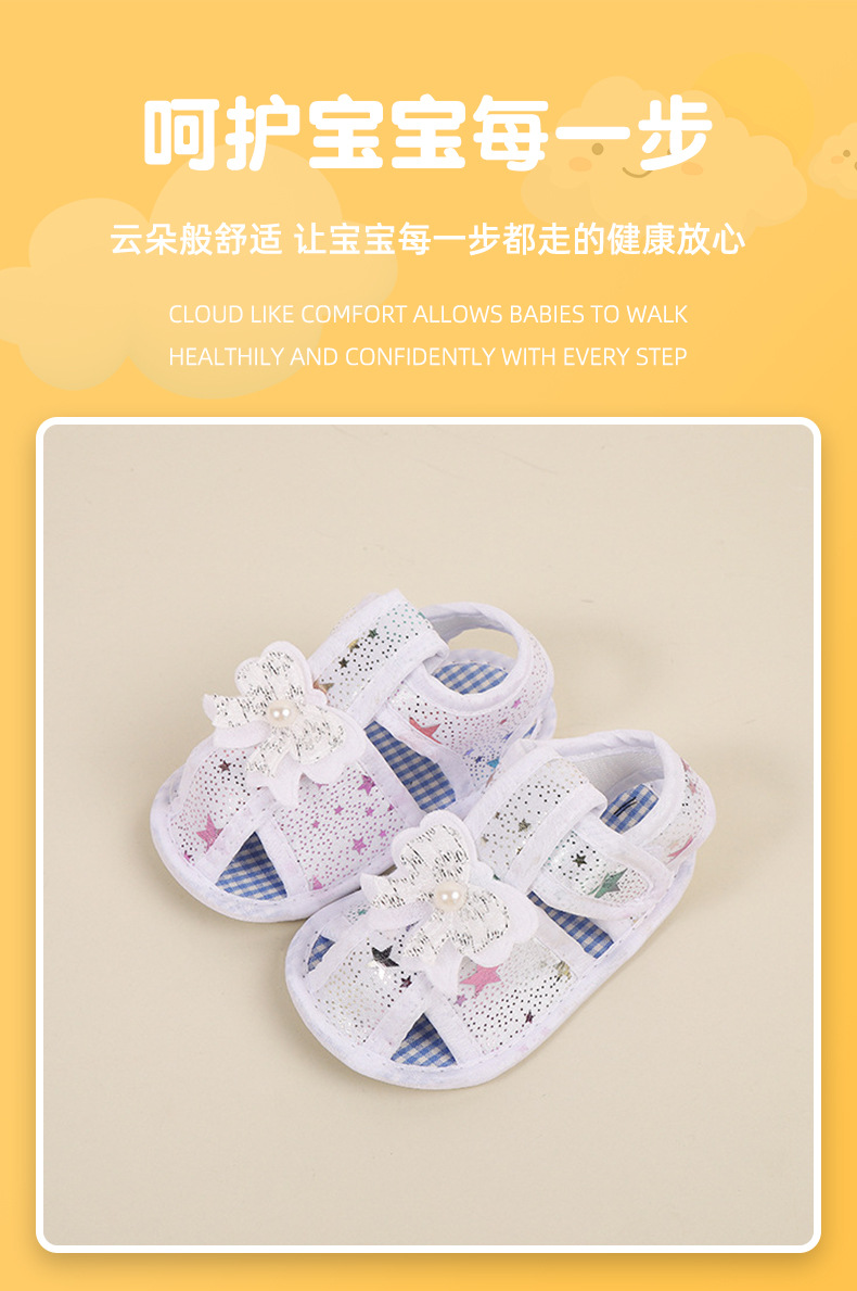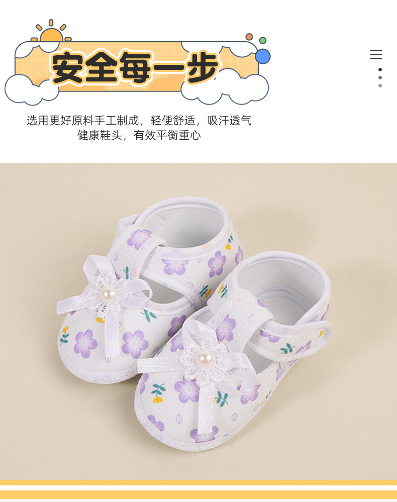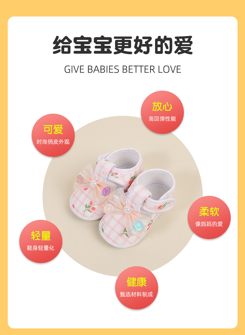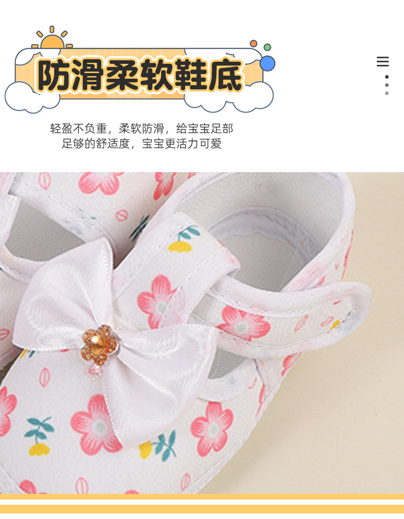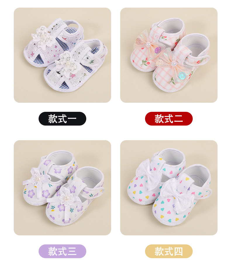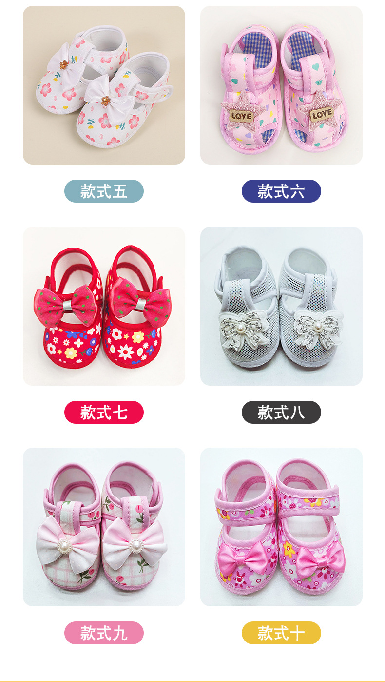 foreign trade baby shoes soft bottom small floral velcro toddler baby shoes bow non-slip cloth sole pumps baby shoes