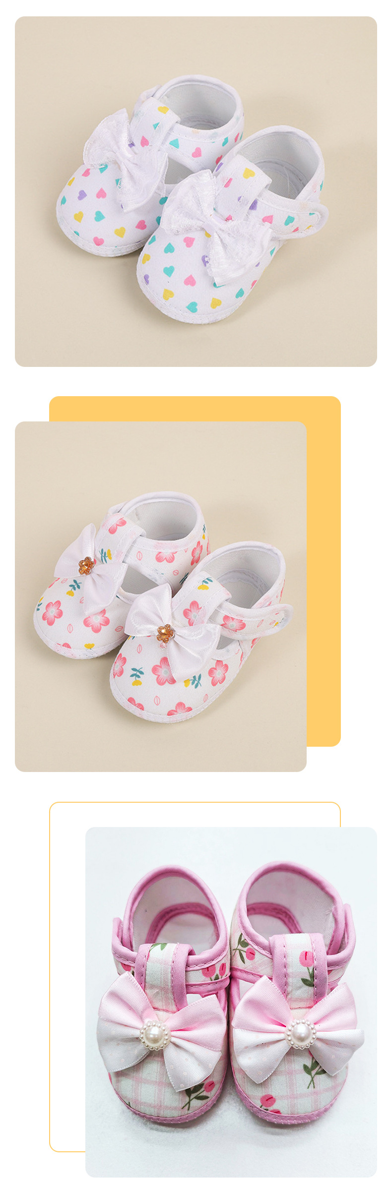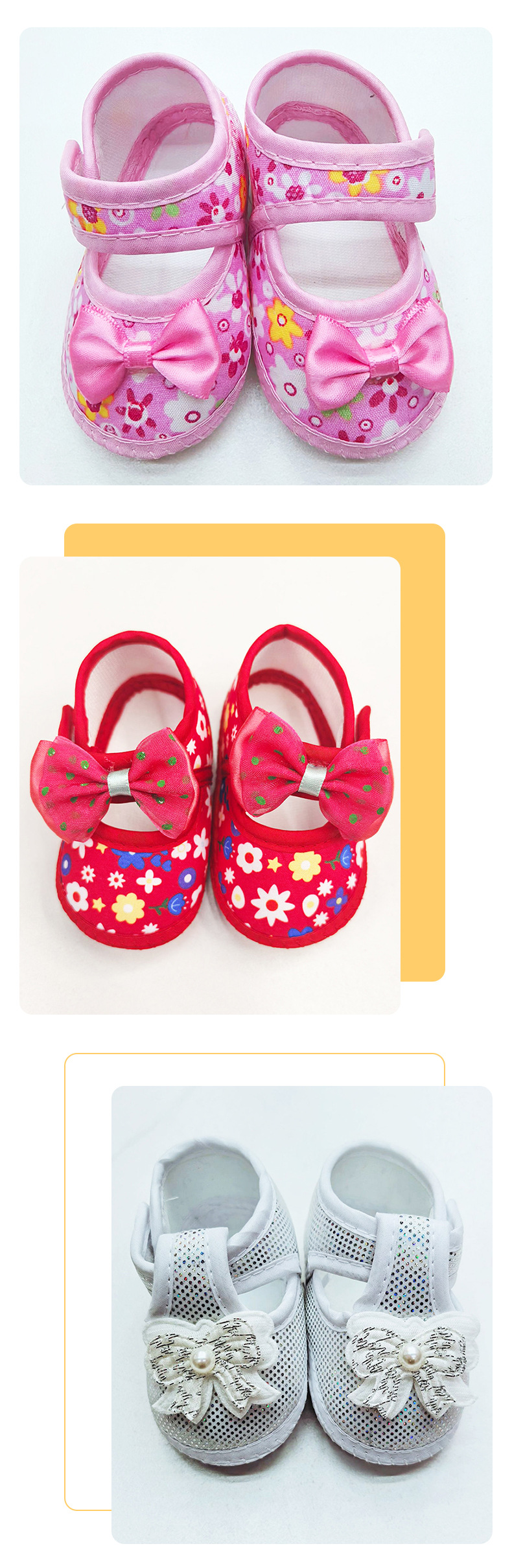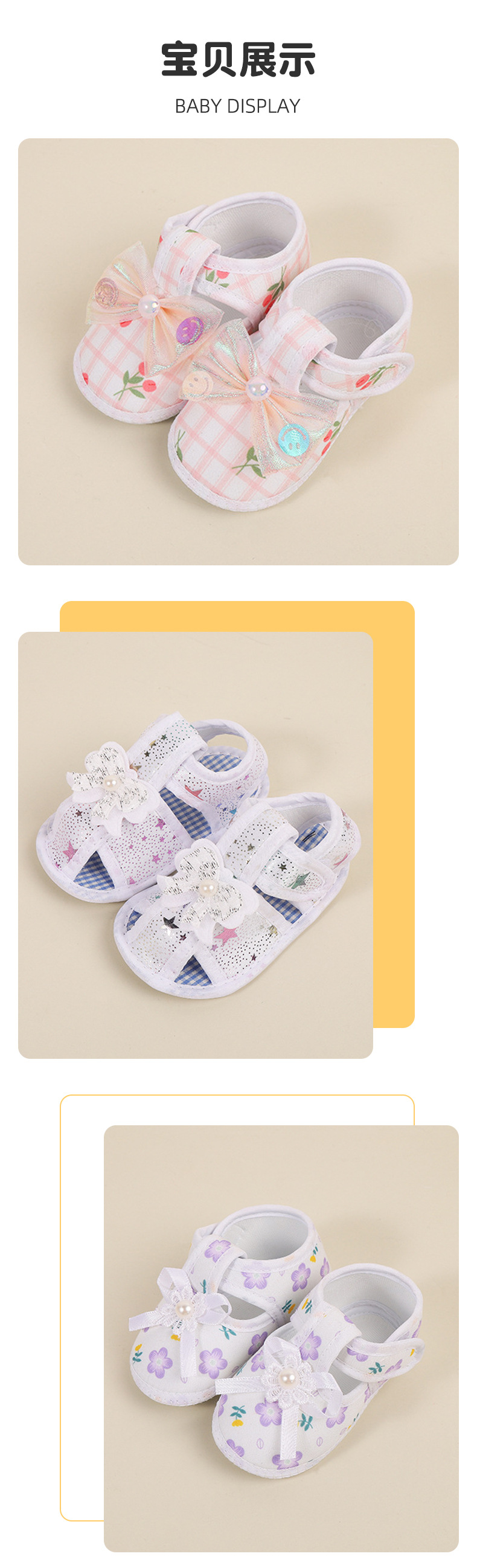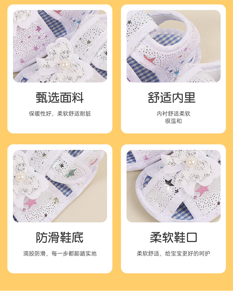 foreign trade baby shoes soft bottom small floral velcro toddler baby shoes bow non-slip cloth sole pumps baby shoes