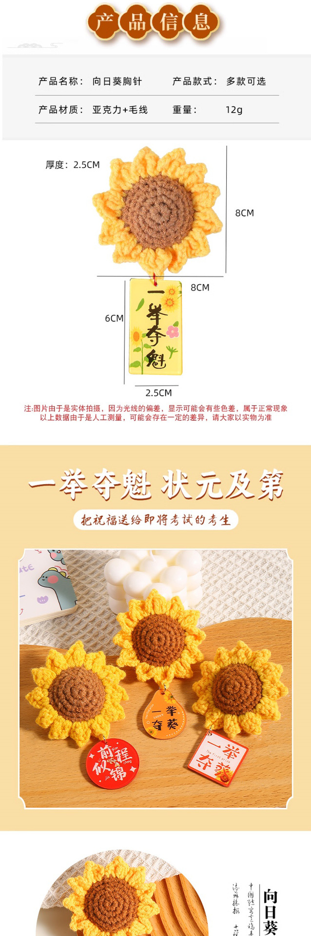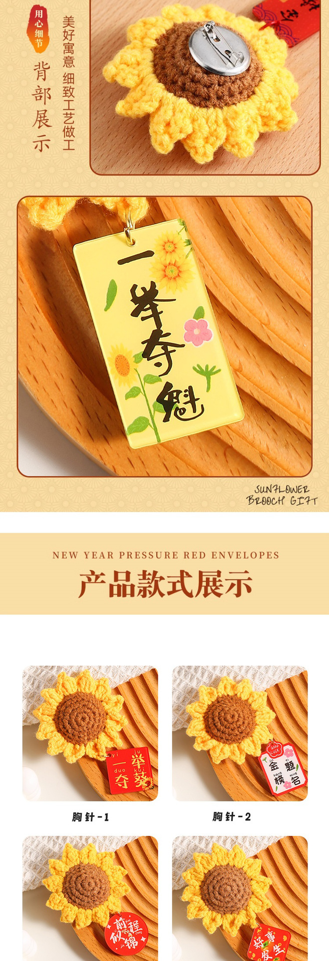 向日葵胸针带叶子