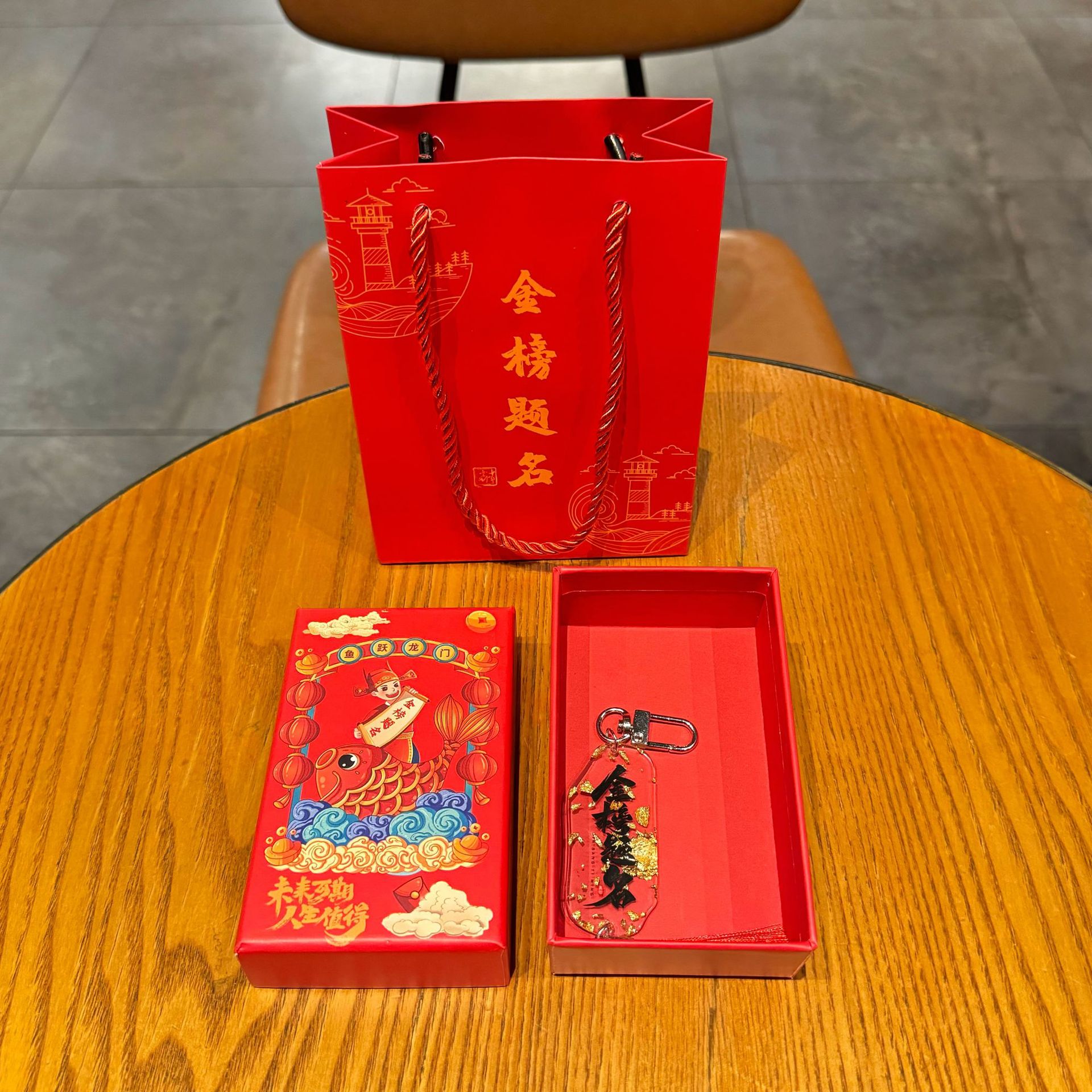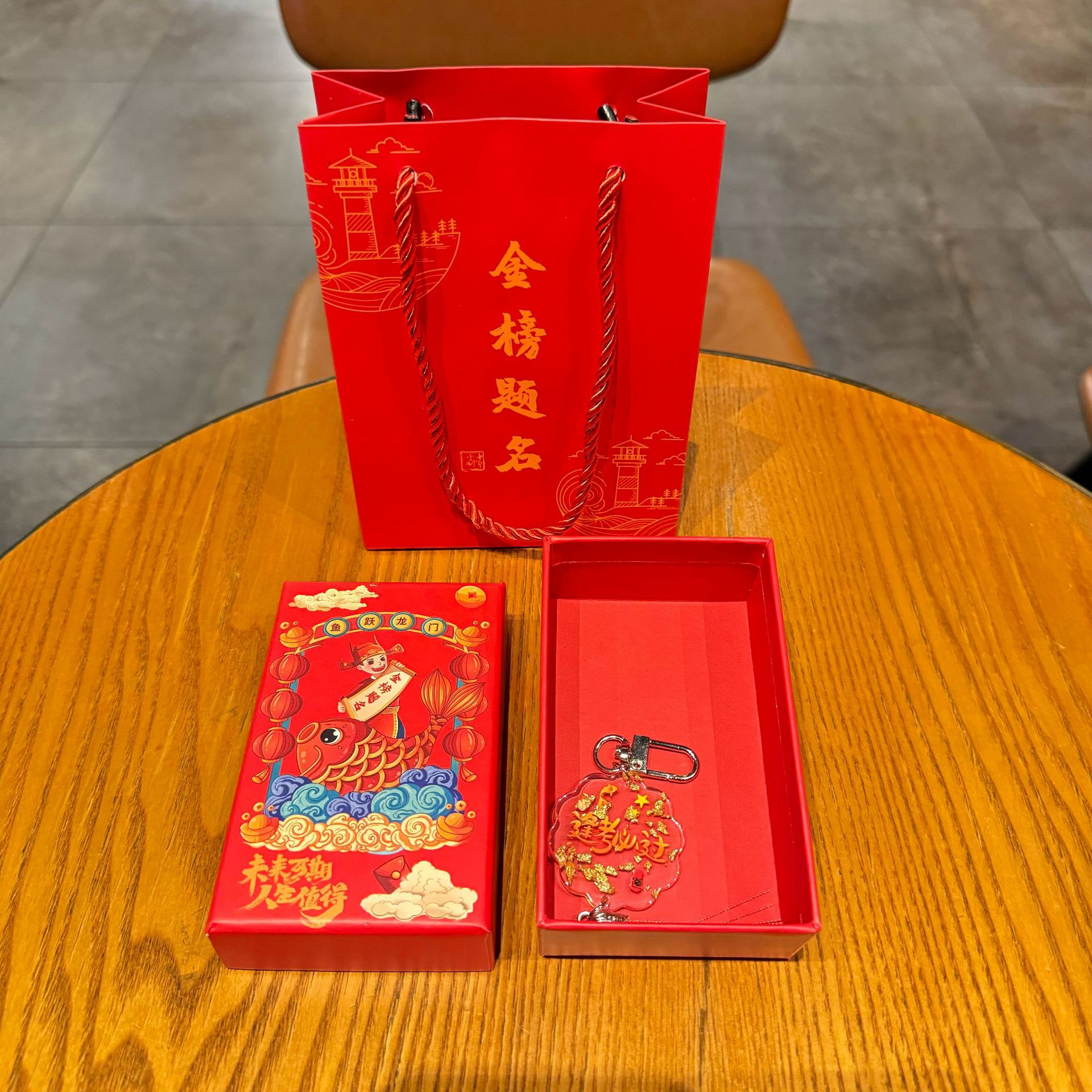 gold foil tassel pendant-pass every exam + gold list gift box + gift bag