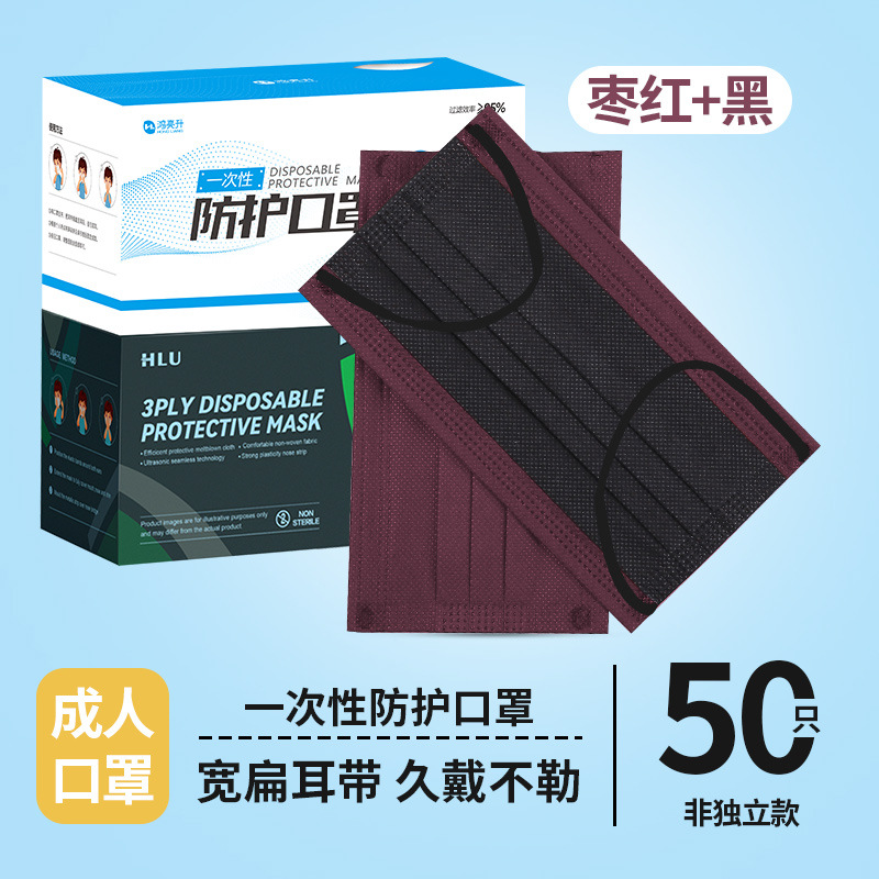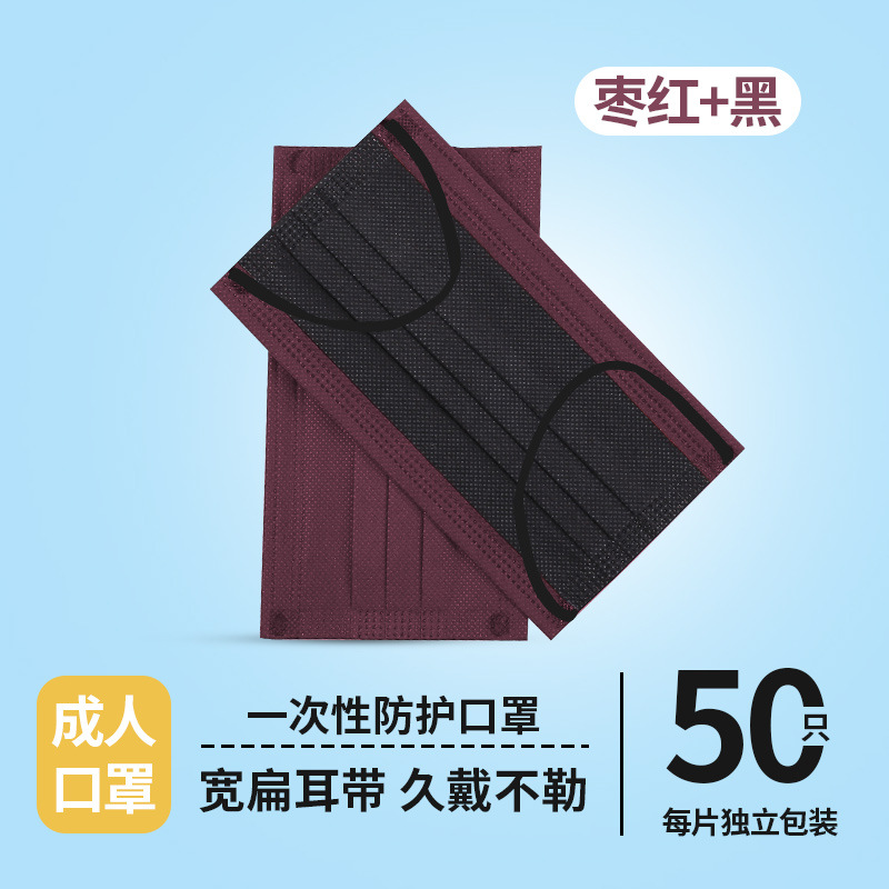 ear-mounted * three layers * purplish red + black * non-independent 50 pieces/box