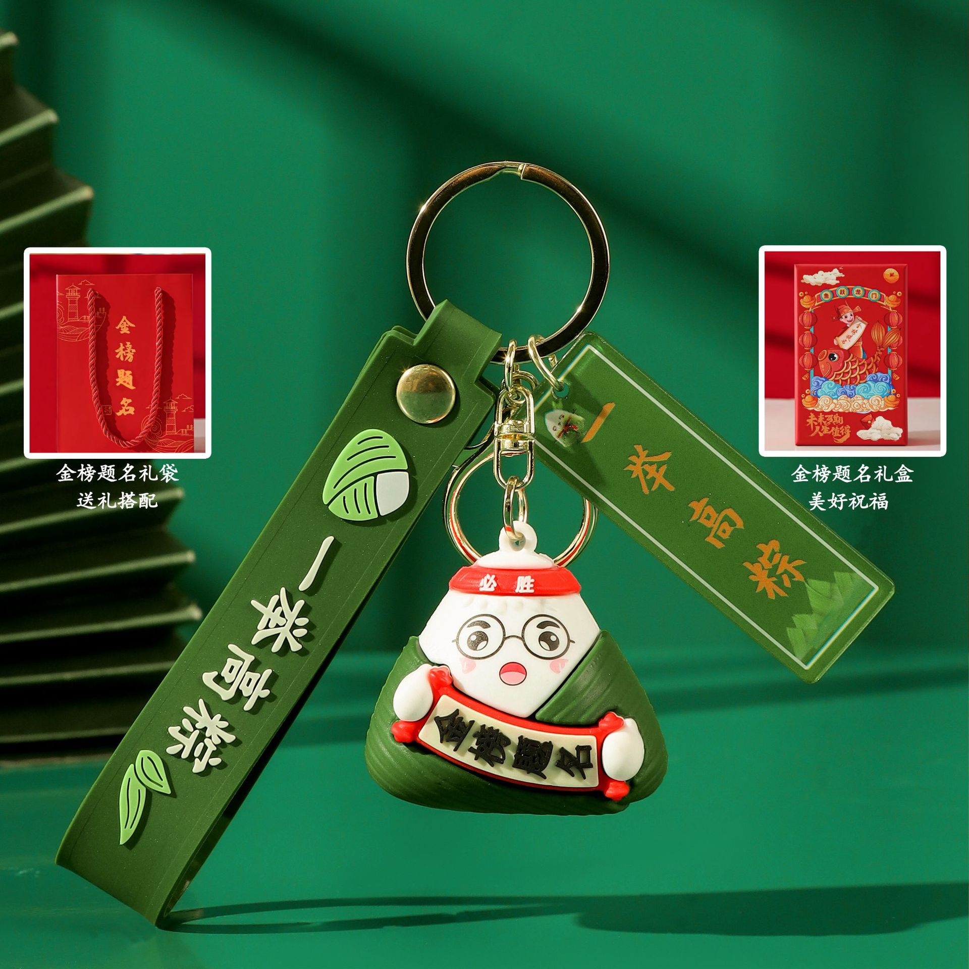 original zongzi-dark green + gold list gift box + gift bag