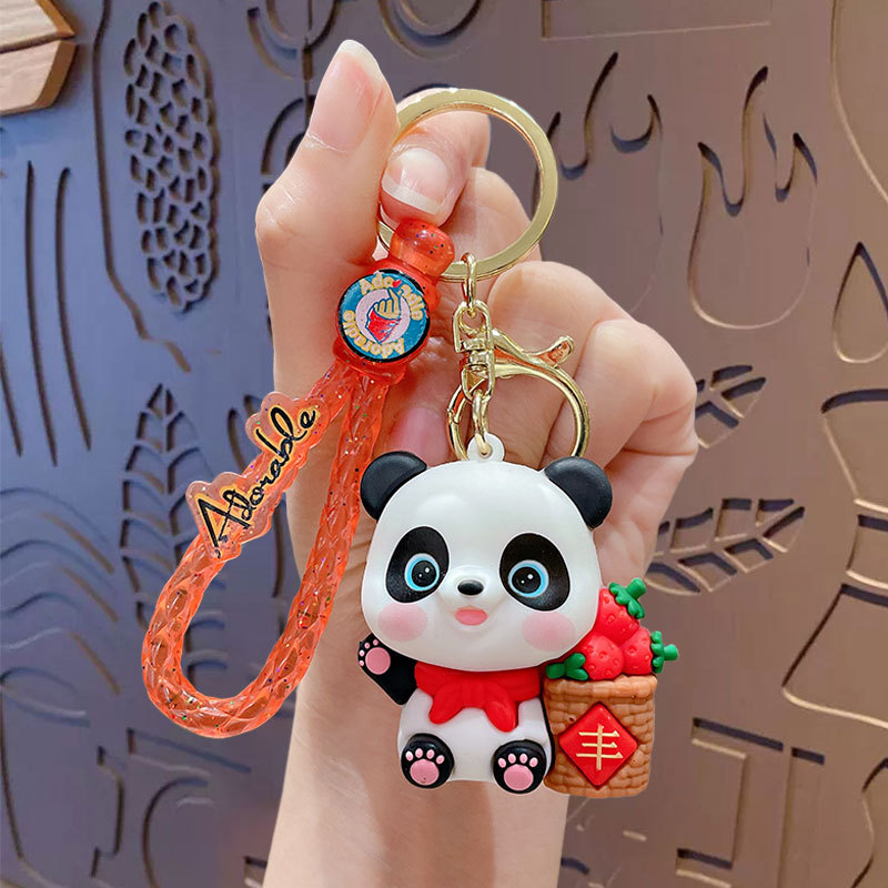 harvest panda keychain-red right