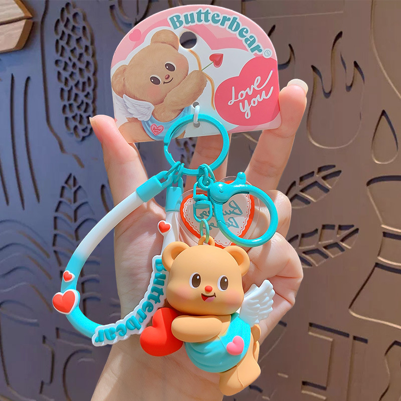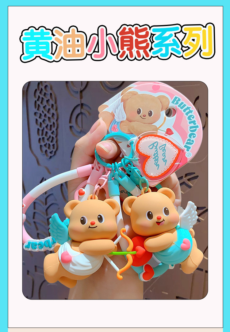 butter bear keychain-heart-holding style