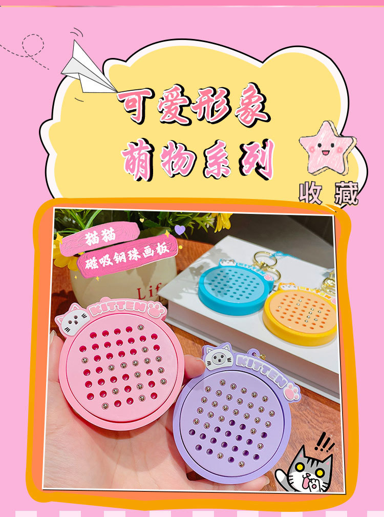 cat decompression magnetic steel ball drawing board buckle-pink
