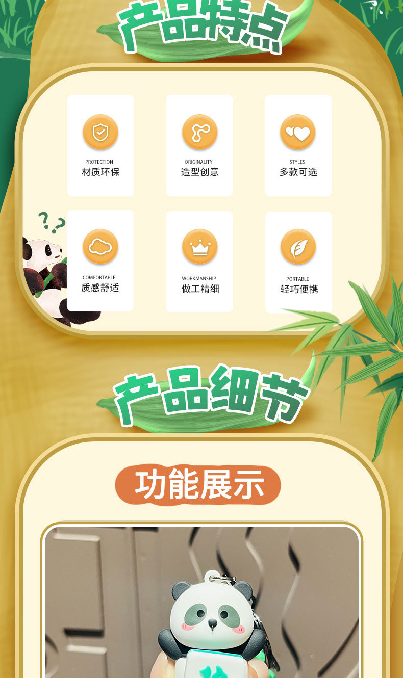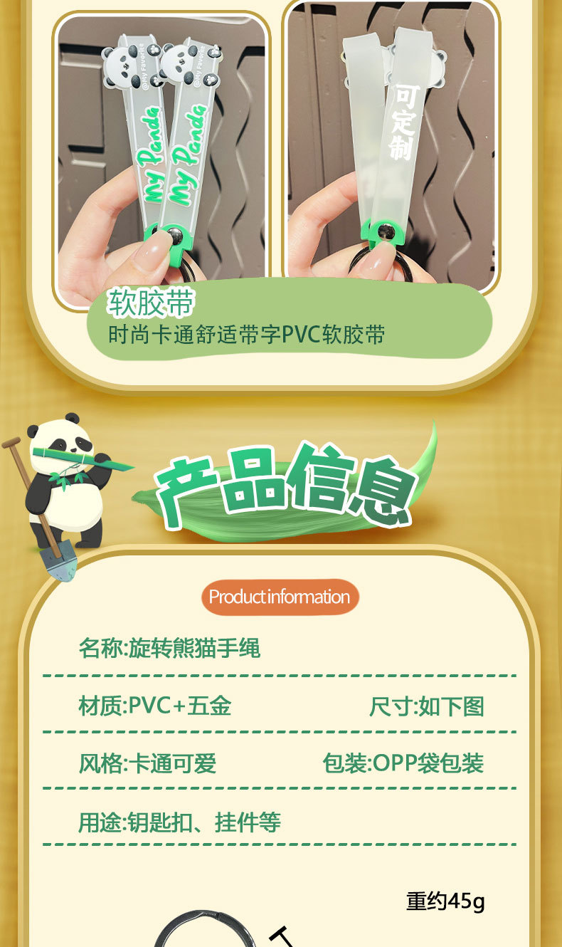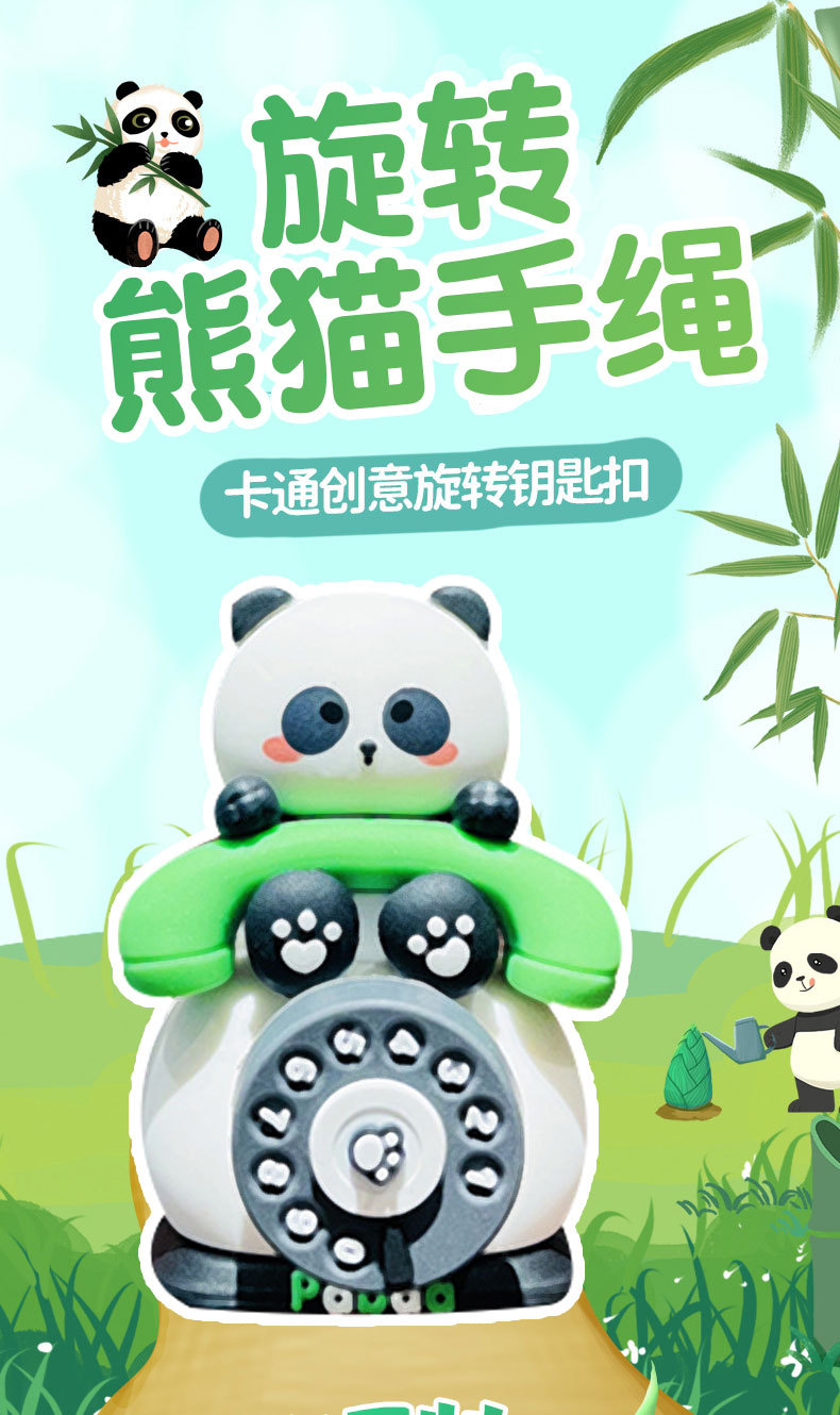 旋转熊猫手绳-趴趴铃铛