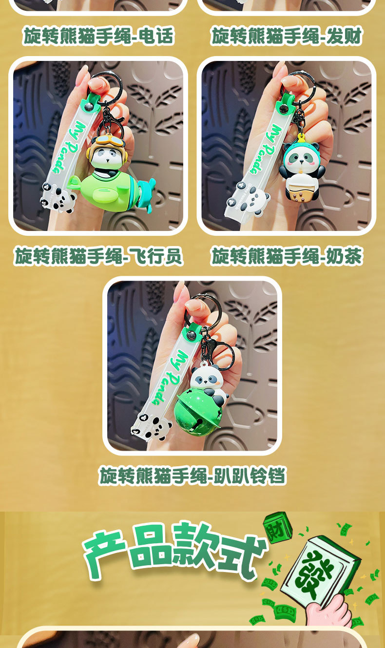 旋转熊猫手绳-发财
