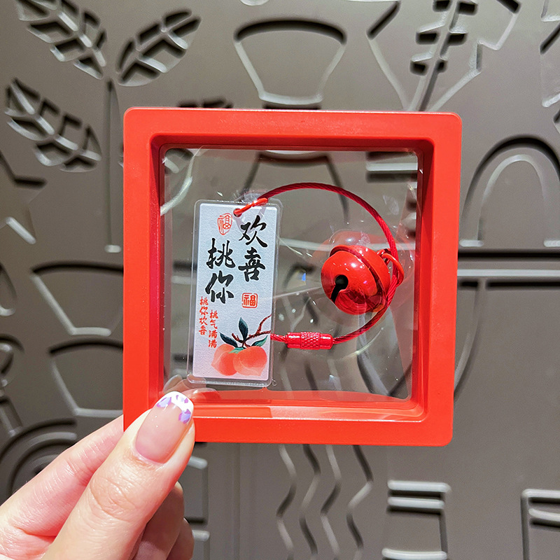 水墨风好寓意文字牌-桃你欢喜+红色悬浮盒