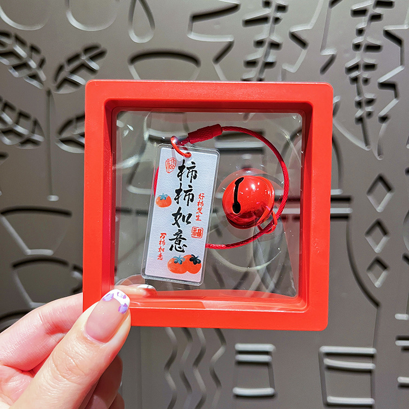 水墨风好寓意文字牌-柿柿如意+红色悬浮盒