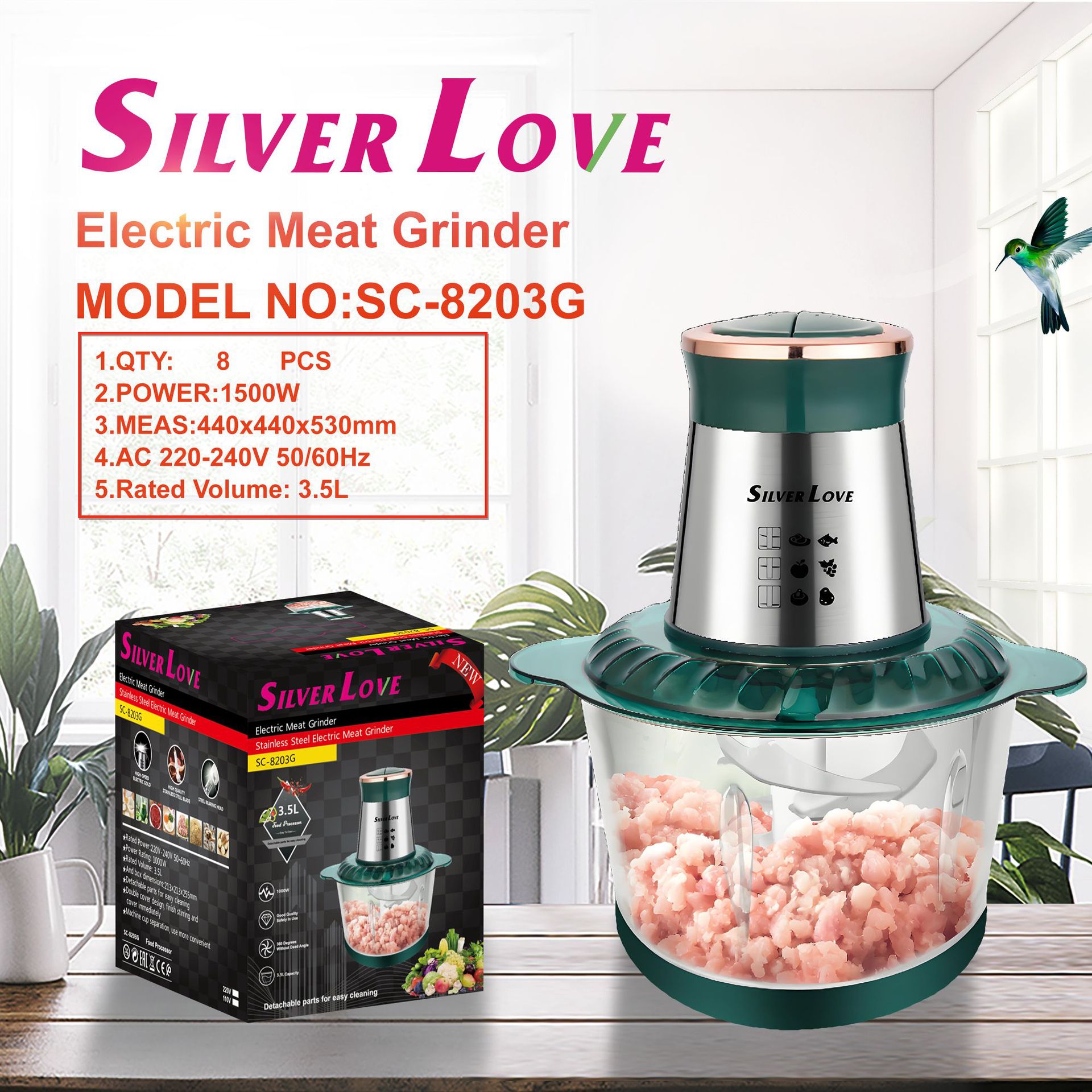 foreign trade export household european meat grinder glass electric cooking machine multi-function kitchen meat chopper 3.5l