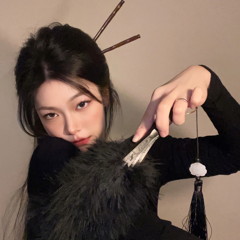 (atmosphere artifact) feather fan-black with pendant