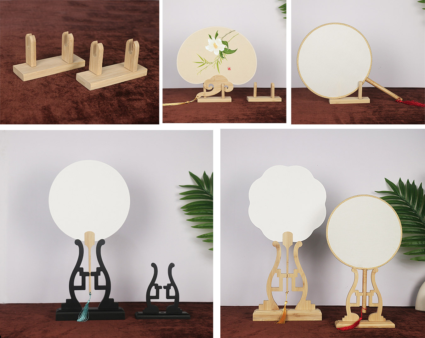 (circular fan rack) white bamboo semicircle rack