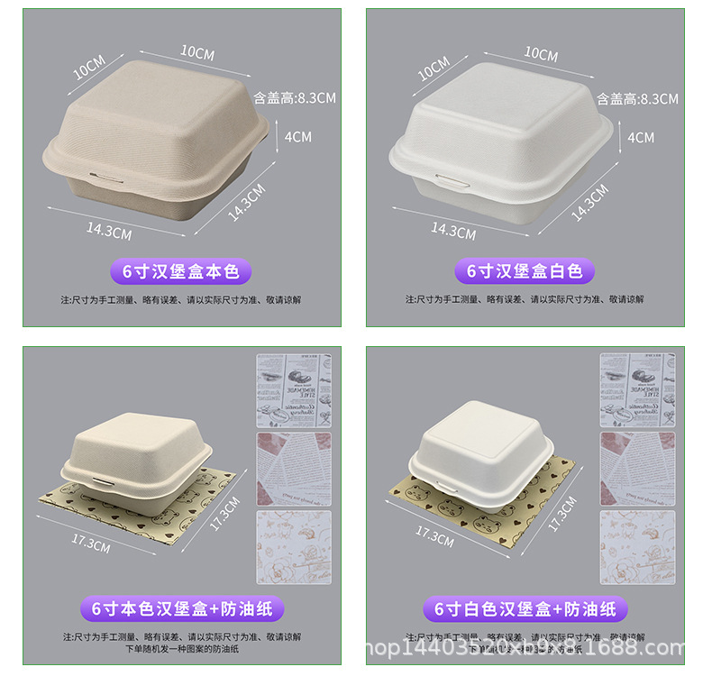 4-inch natural color hamburger box (can't hold tlamee su and 4-inch cake)