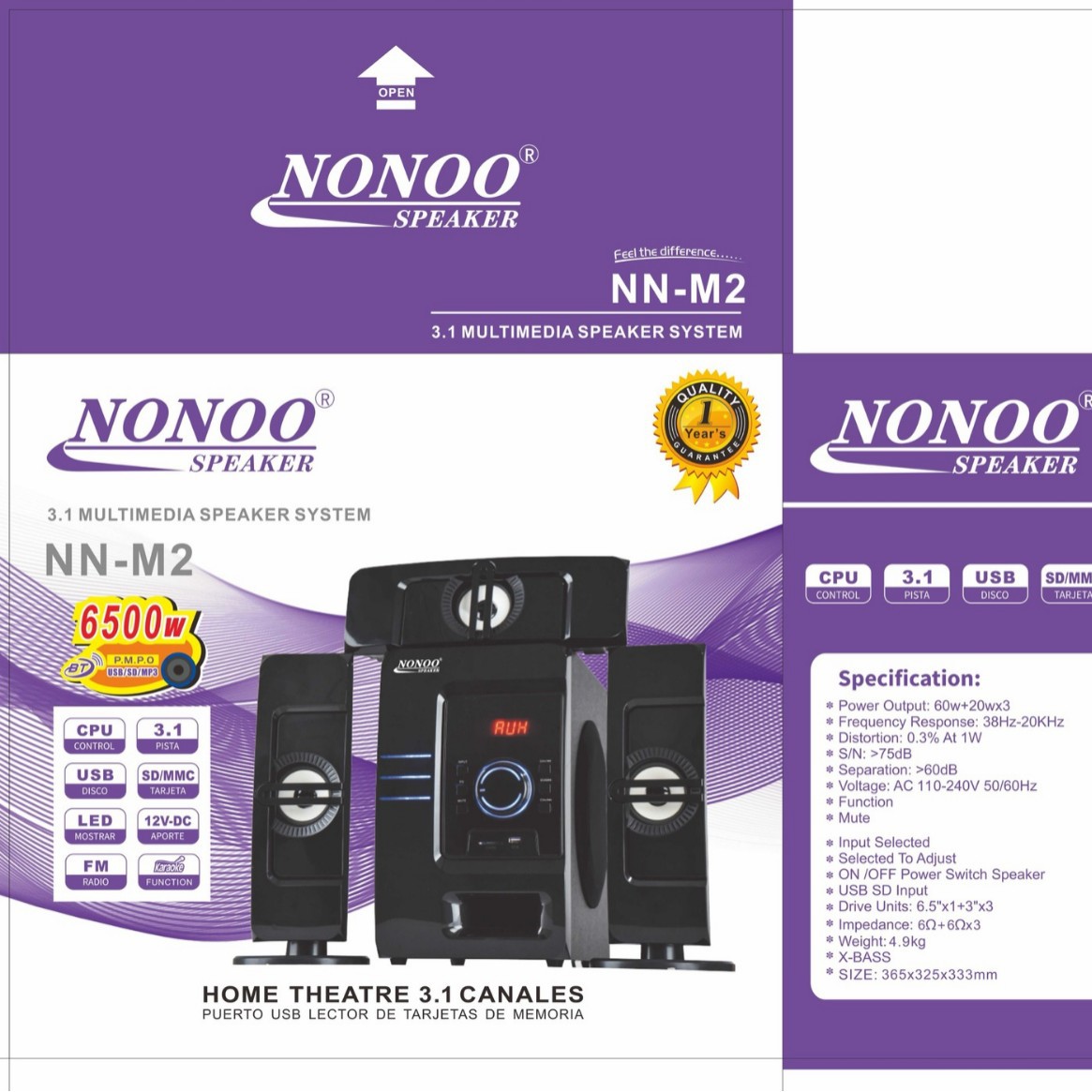 Function: Bluetooth, TF, USB, AUX, FM, Remote control knob with LED light