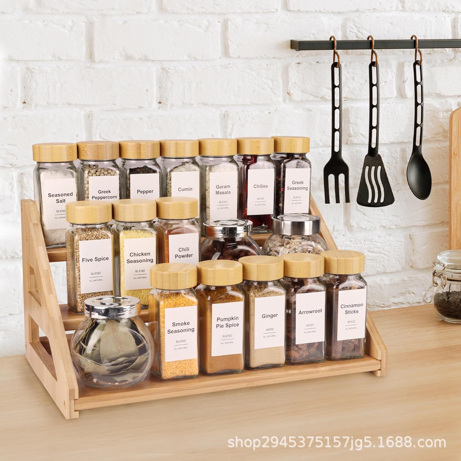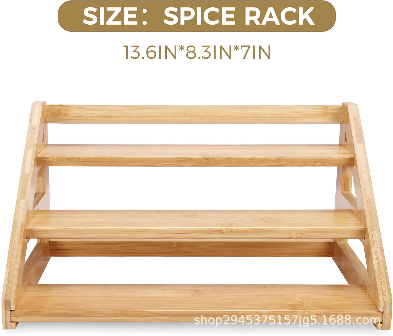 bamboo multi-layer seasoning kitchen desktop spice organizing rack wooden glass jar storage display rack step-by-step