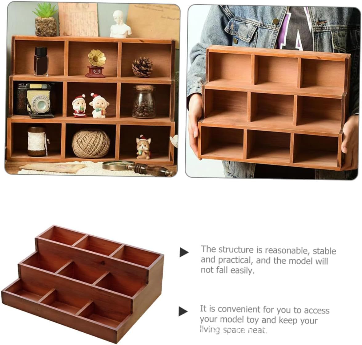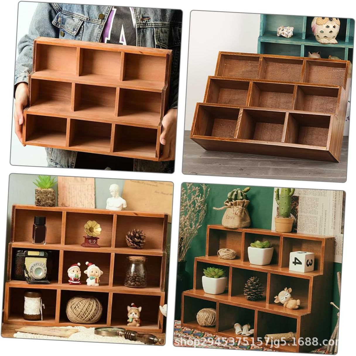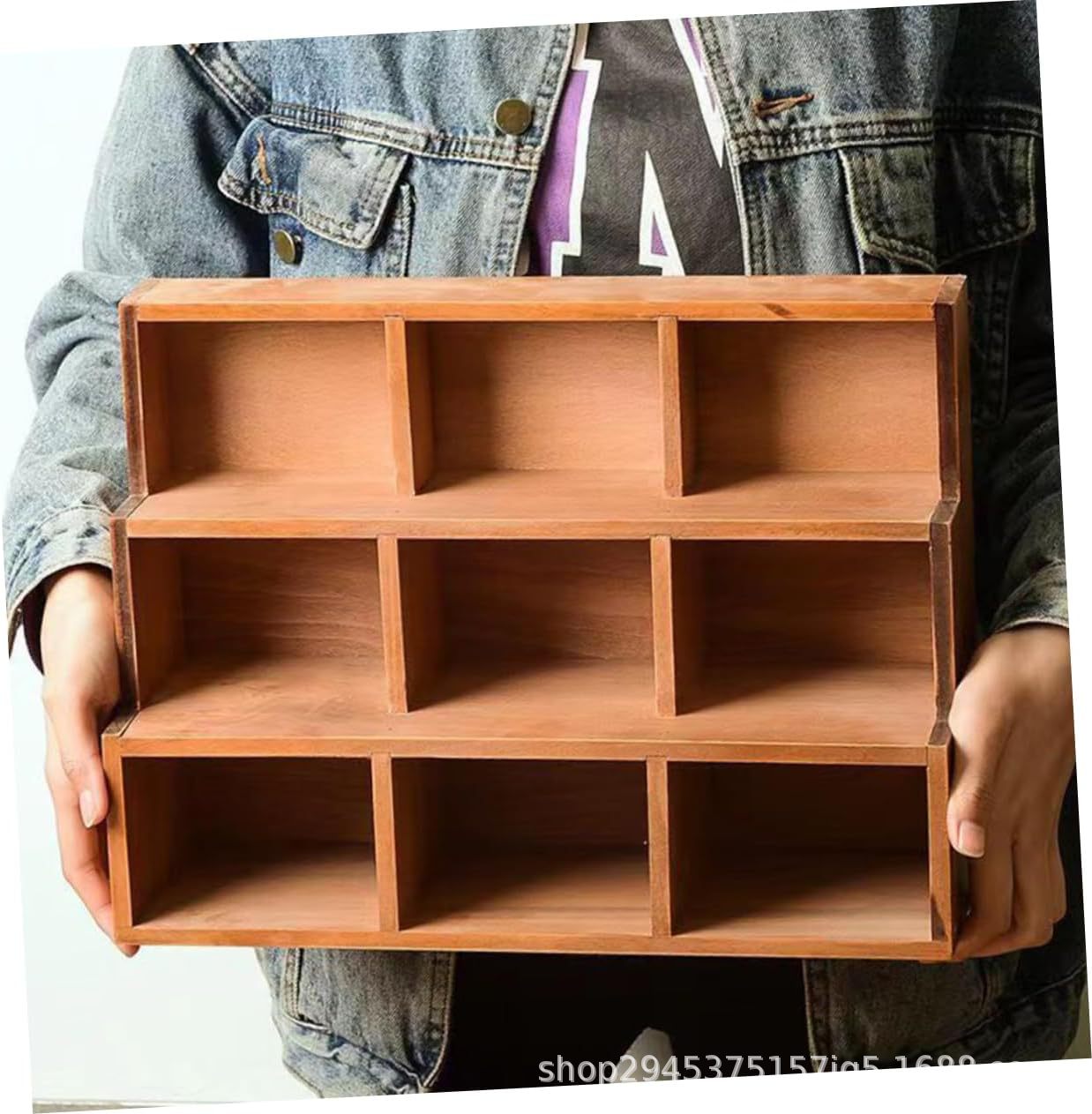 trapezoidal wooden desktop storage cabinet ladder multi-grid wall hanging display cabinet home sundries storage box storage box