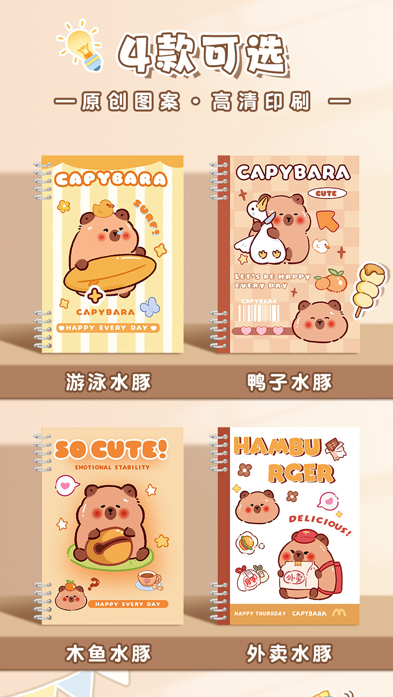 swimming capybara (50 pieces) inner pages with horizontal lines