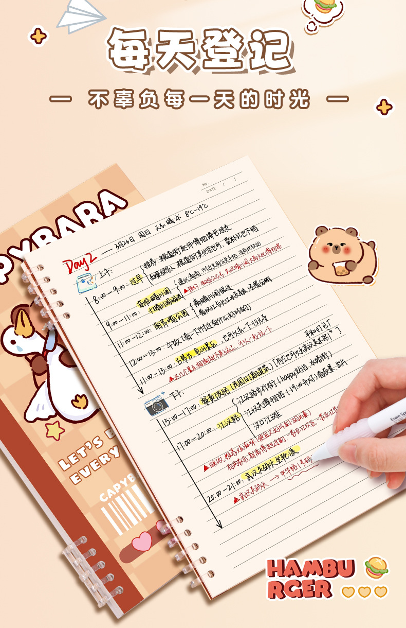 duck capybara (50 pieces) inner pages with horizontal lines