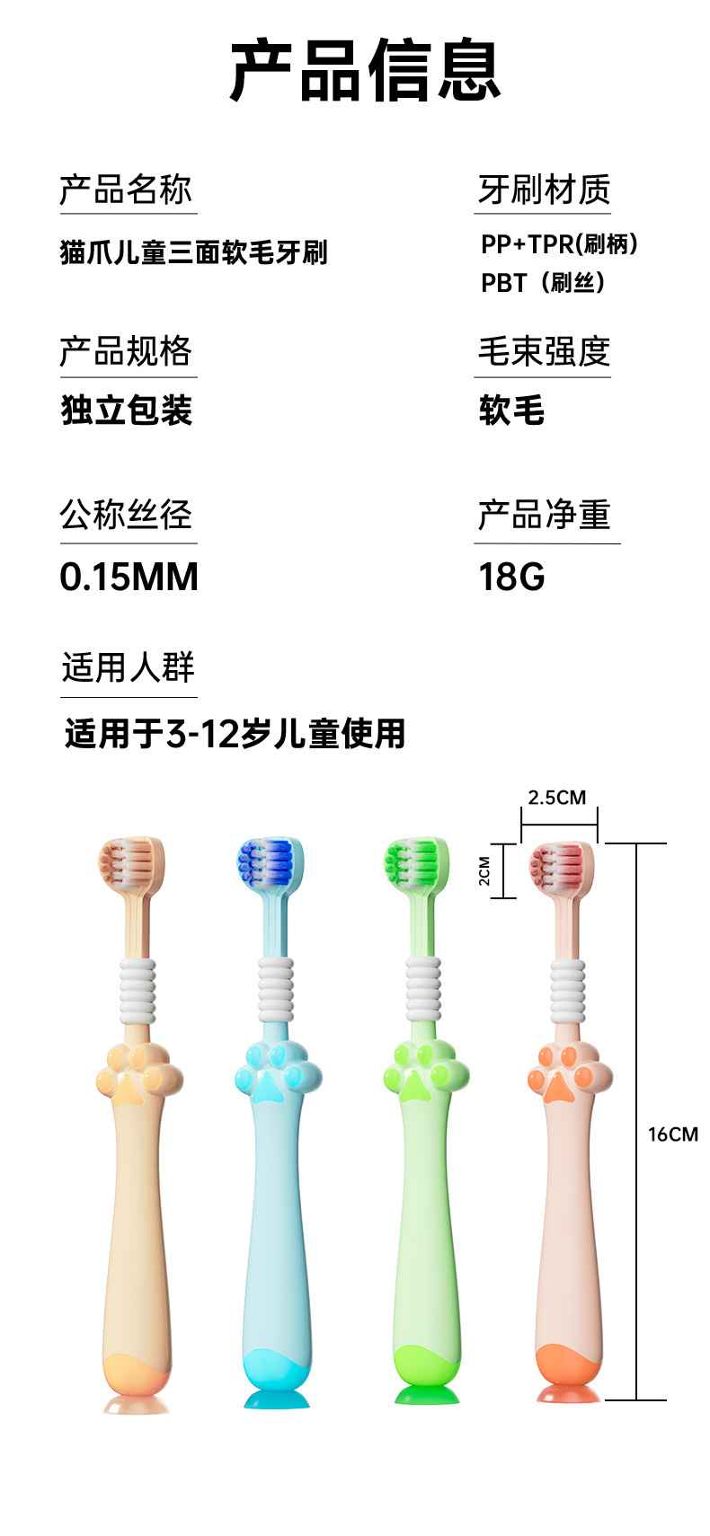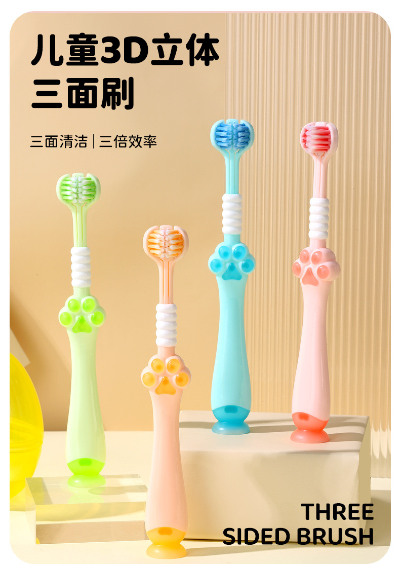 children's three sides soft-bristle toothbrush fresh color matching soft ten thousand hair deep cleaning hair claw non-slip children's toothbrush wholesale