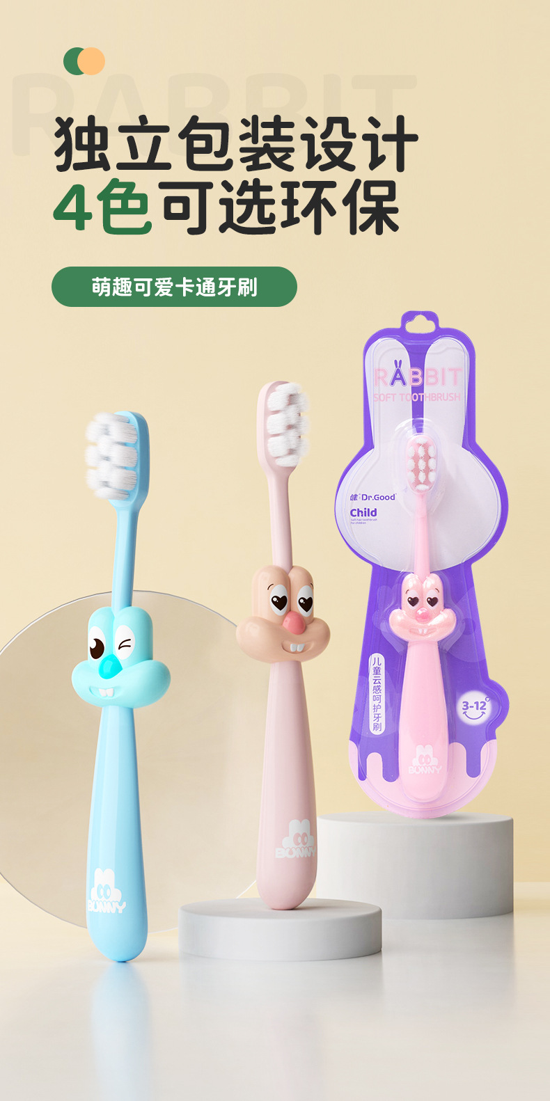 children's soft-bristle toothbrush cute cartoon non-slip handle 3-12 years old baby soft-bristle toothbrush factory direct sales