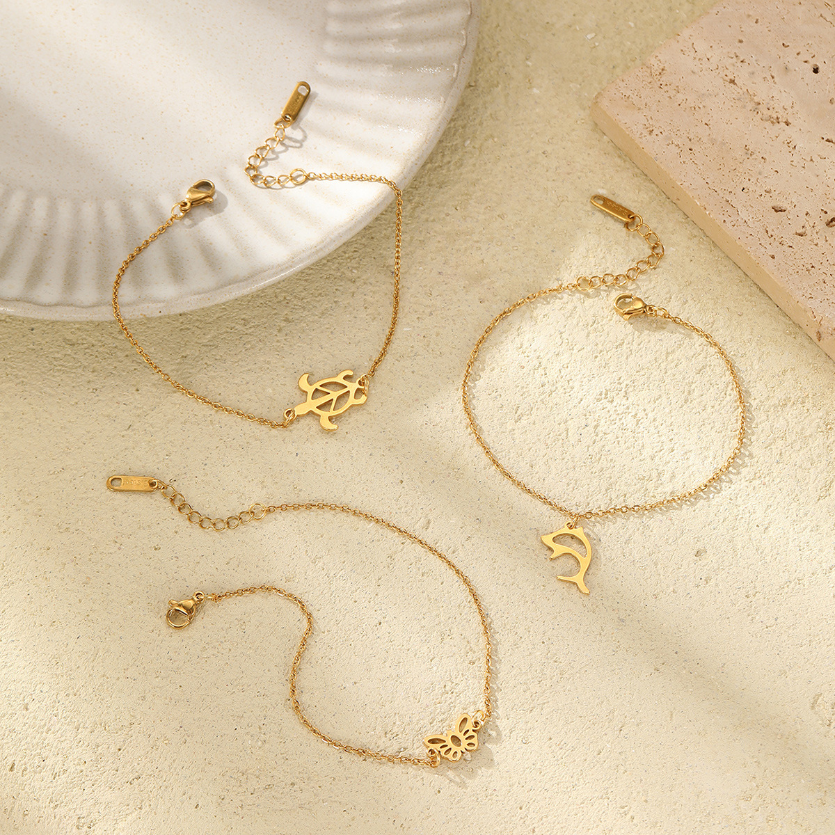 European and American Style Fresh Retro Hollow Turtle Dolphin Butterfly 18K Stainless Steel Bracelet Best Selling