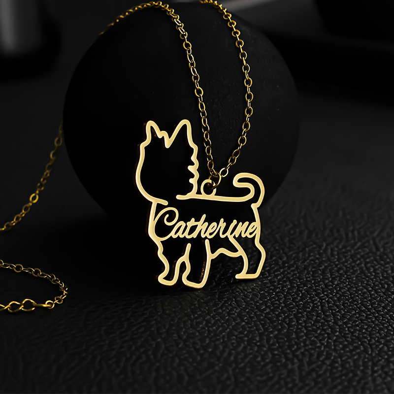 europe and america cross border customized popular stainless steel dog letter pendant fashion cutting pet name necklace clavicle chain