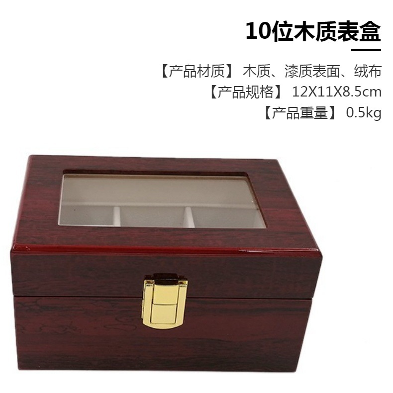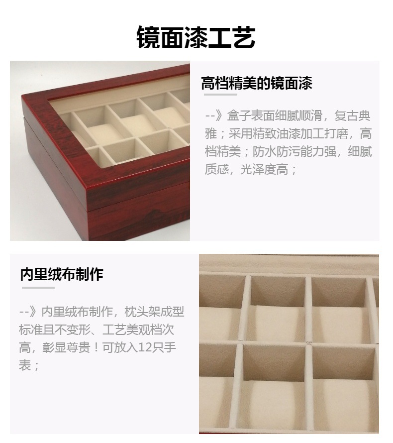 Factory stock jewelry box 12-compartment wooden watch storage box 12-slot clear-coated watch display box with skylight