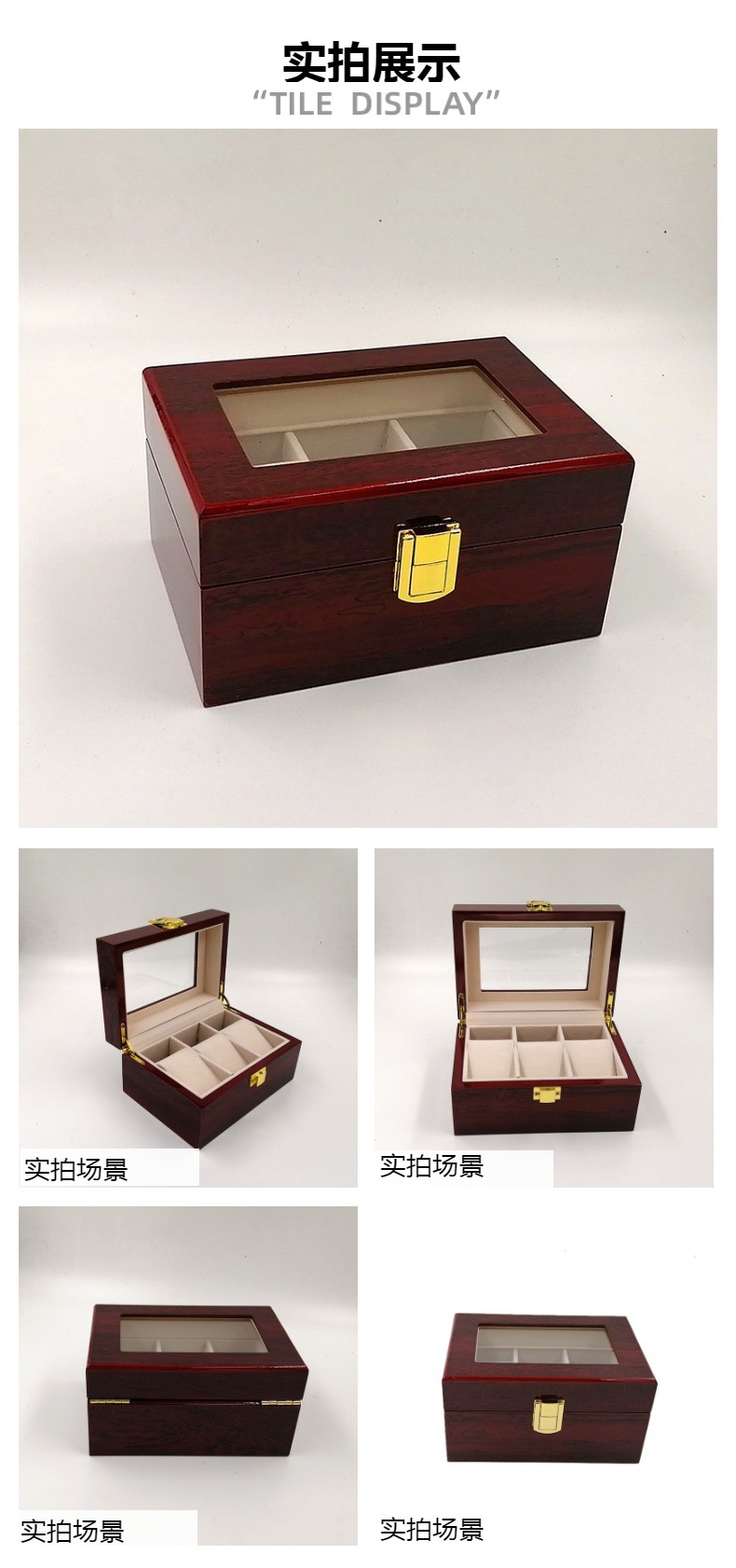 2-compartment 2-shelf watch box wood box with skylight high-end watch box wood-grain paint double-watch holder watch storage box