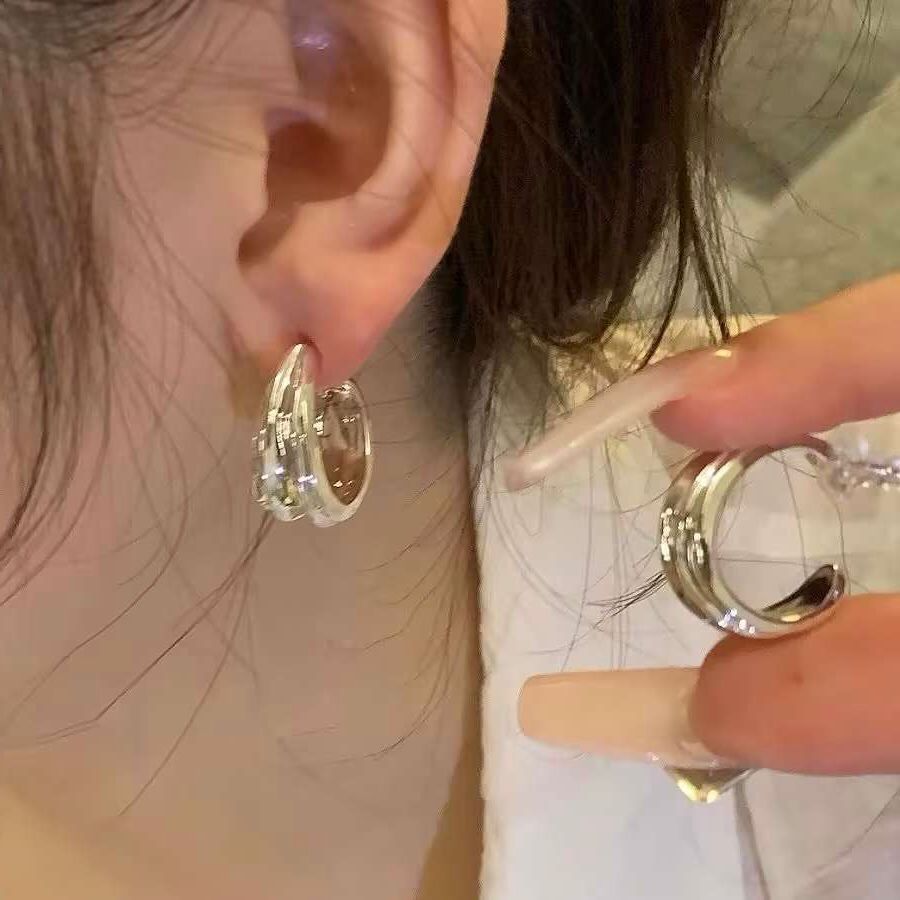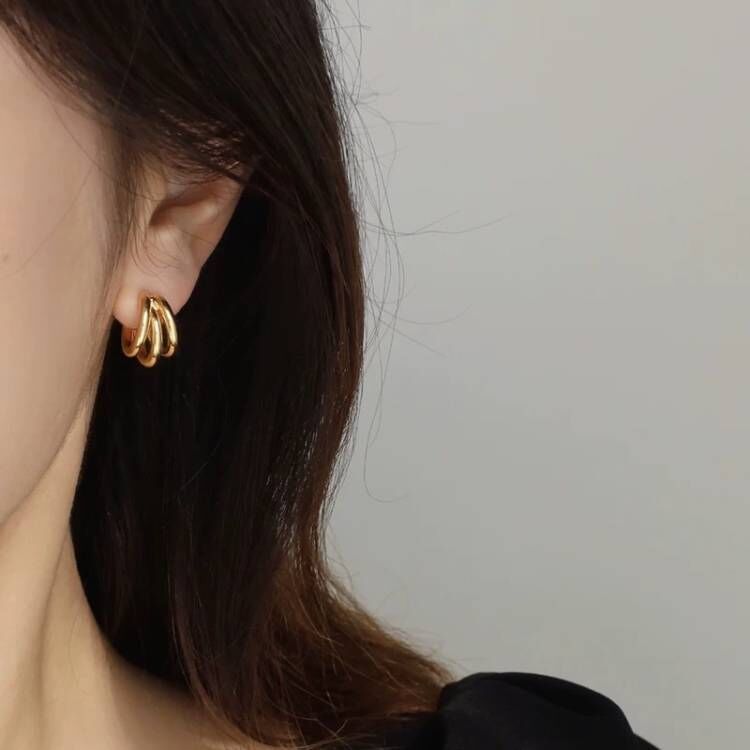 [small size] [golden 925 silver needle] metal hong kong style ear ring