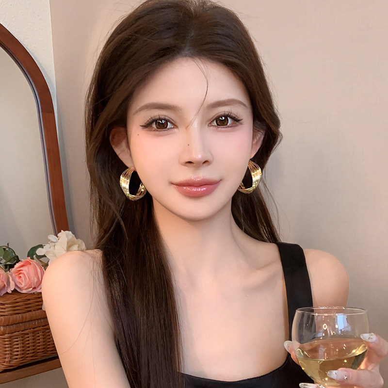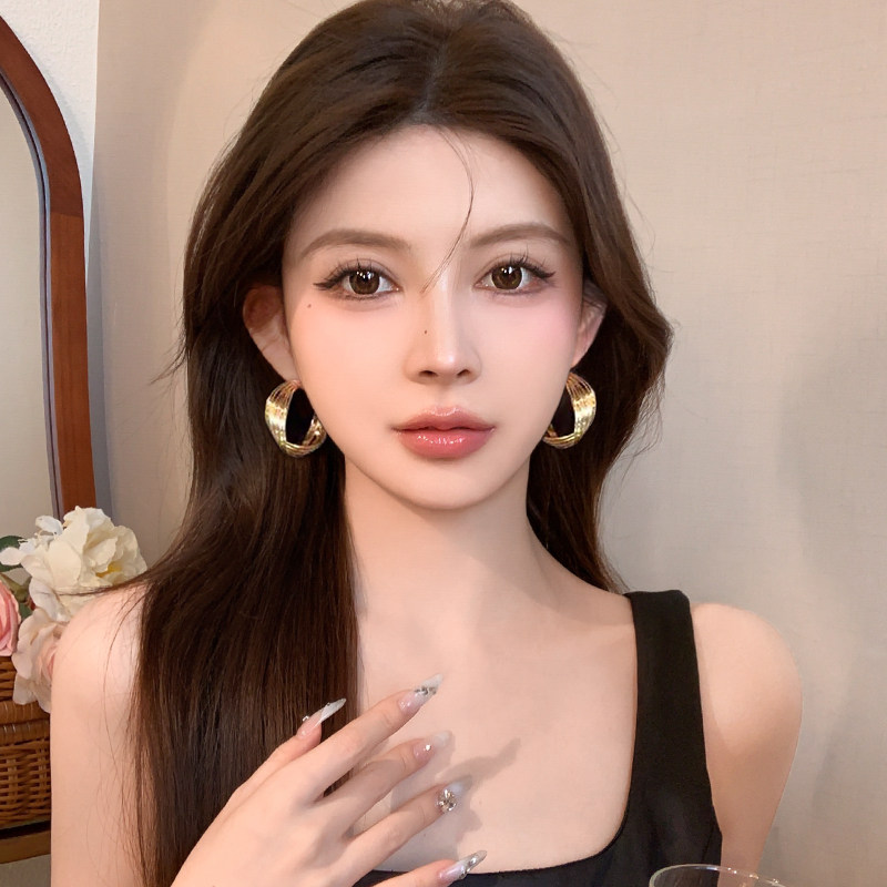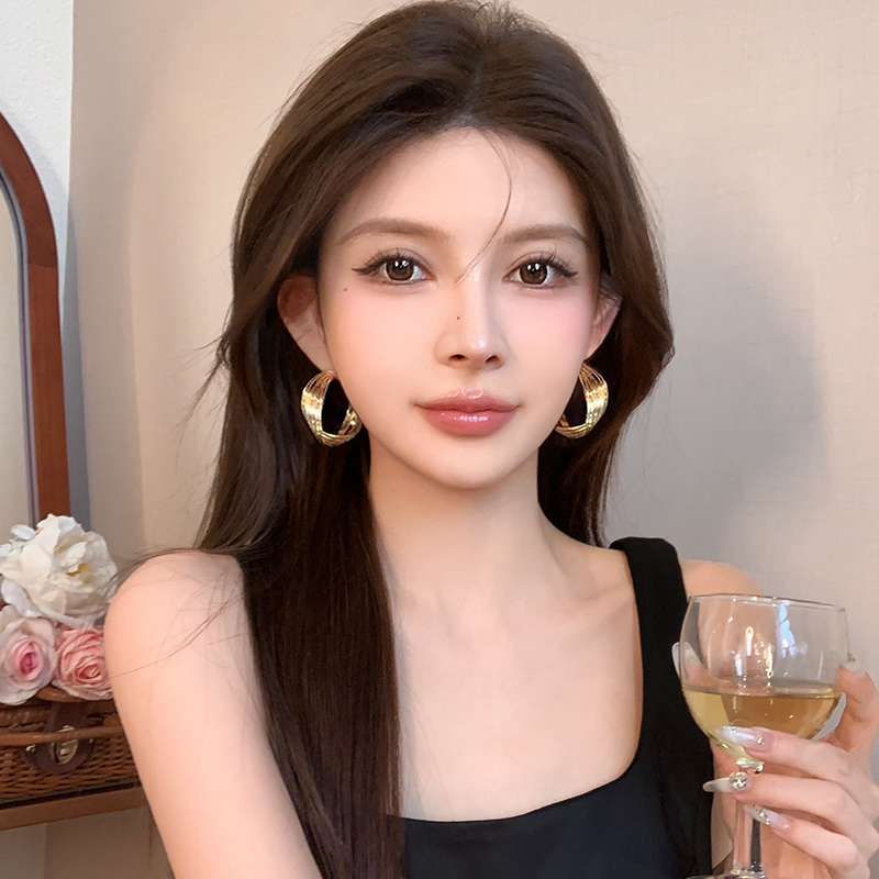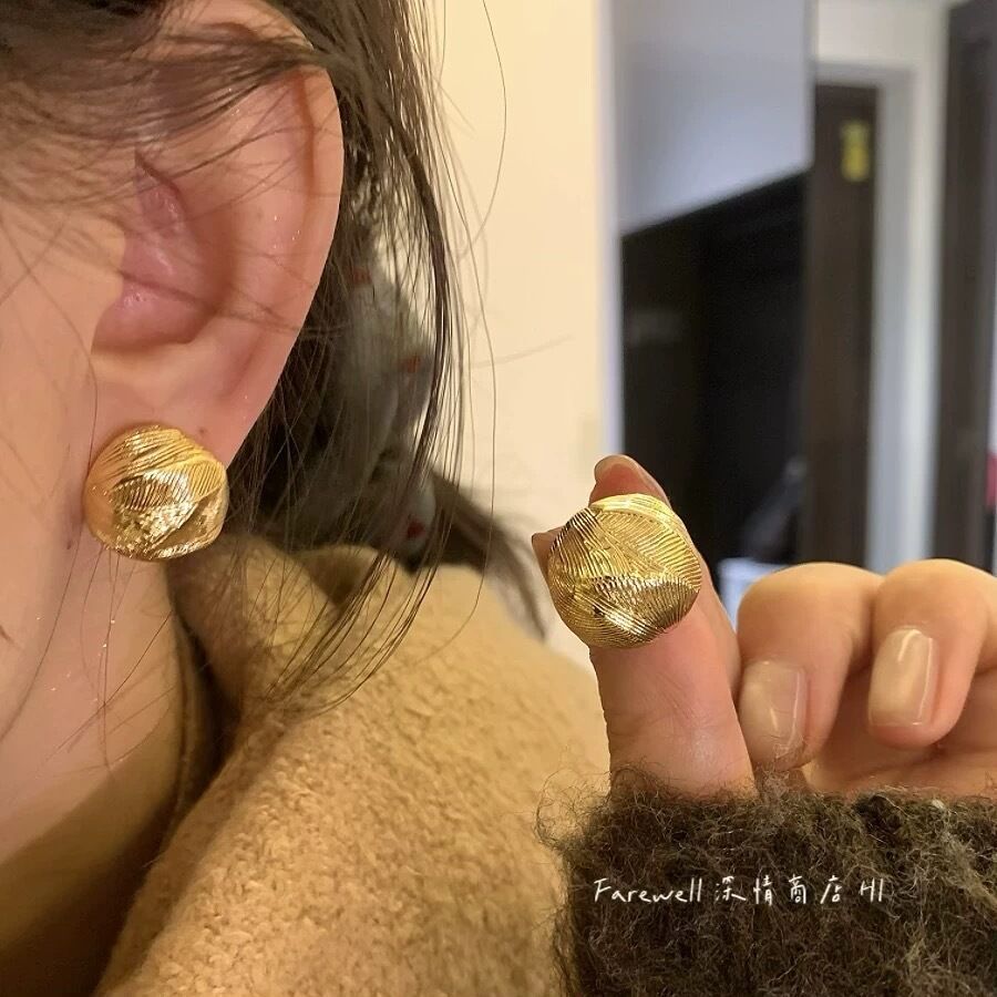 [gold] [925 silver needle] metal retro hong kong style ear ring