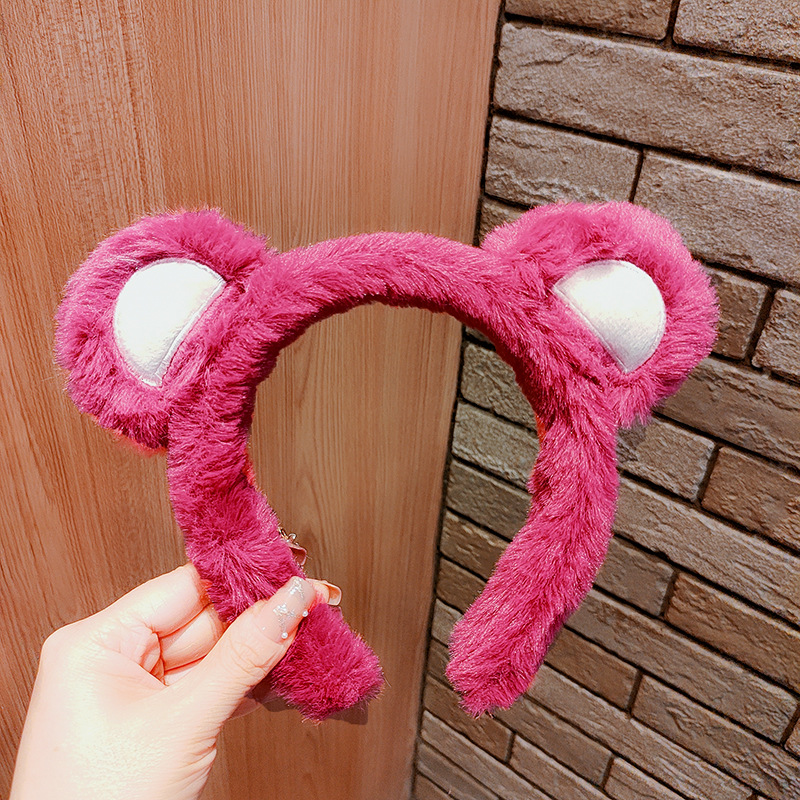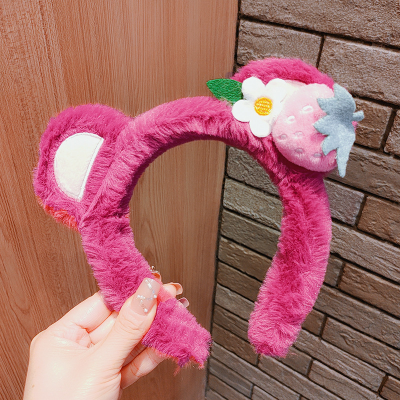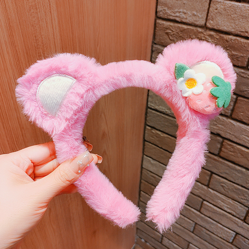 2-107 plush bear pink strawberry hair band