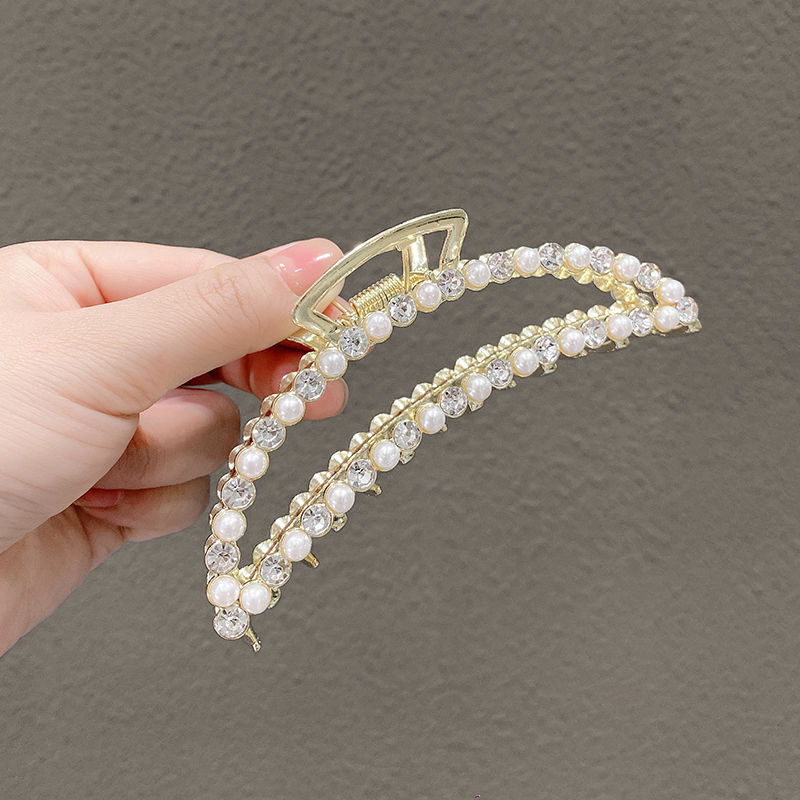 18-a14 double row pearl rhinestone crescent