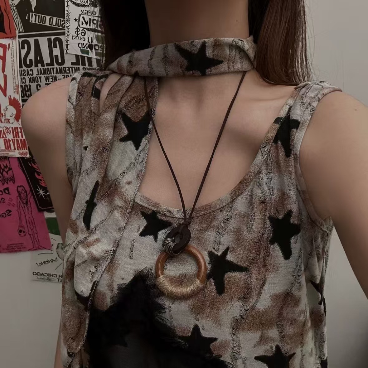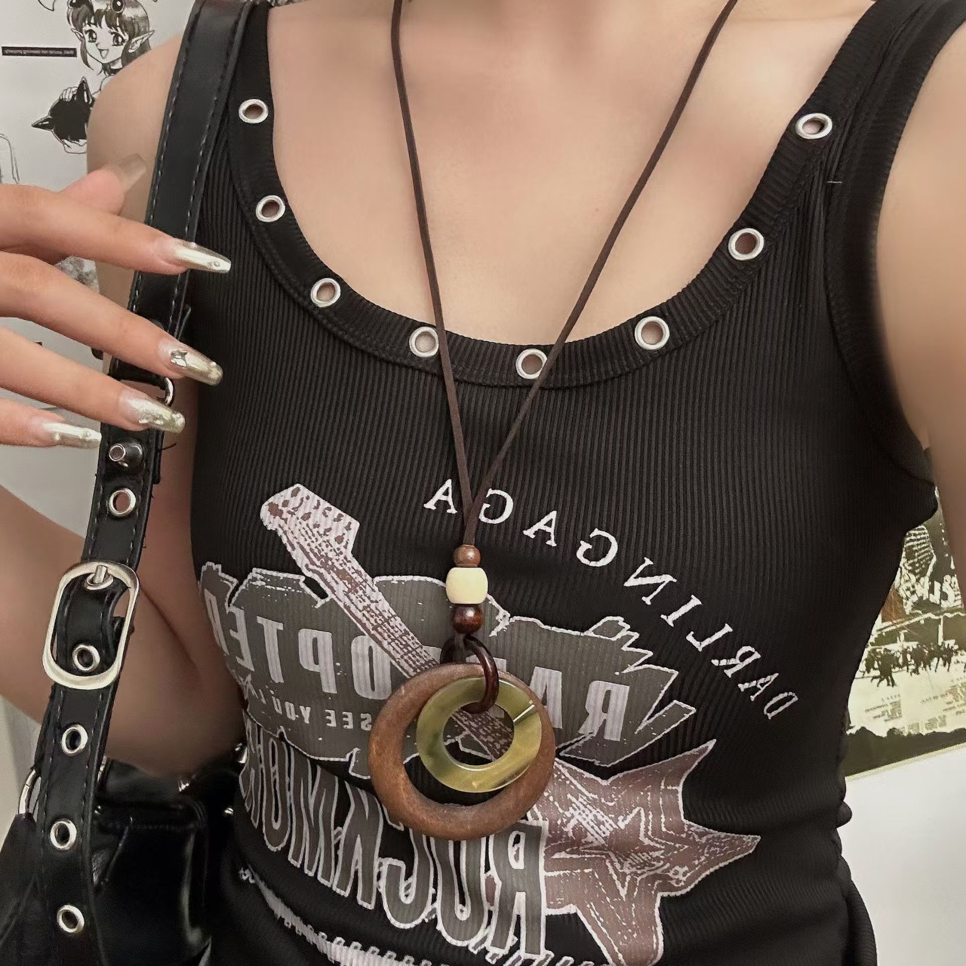 wooden ring necklace dx0460