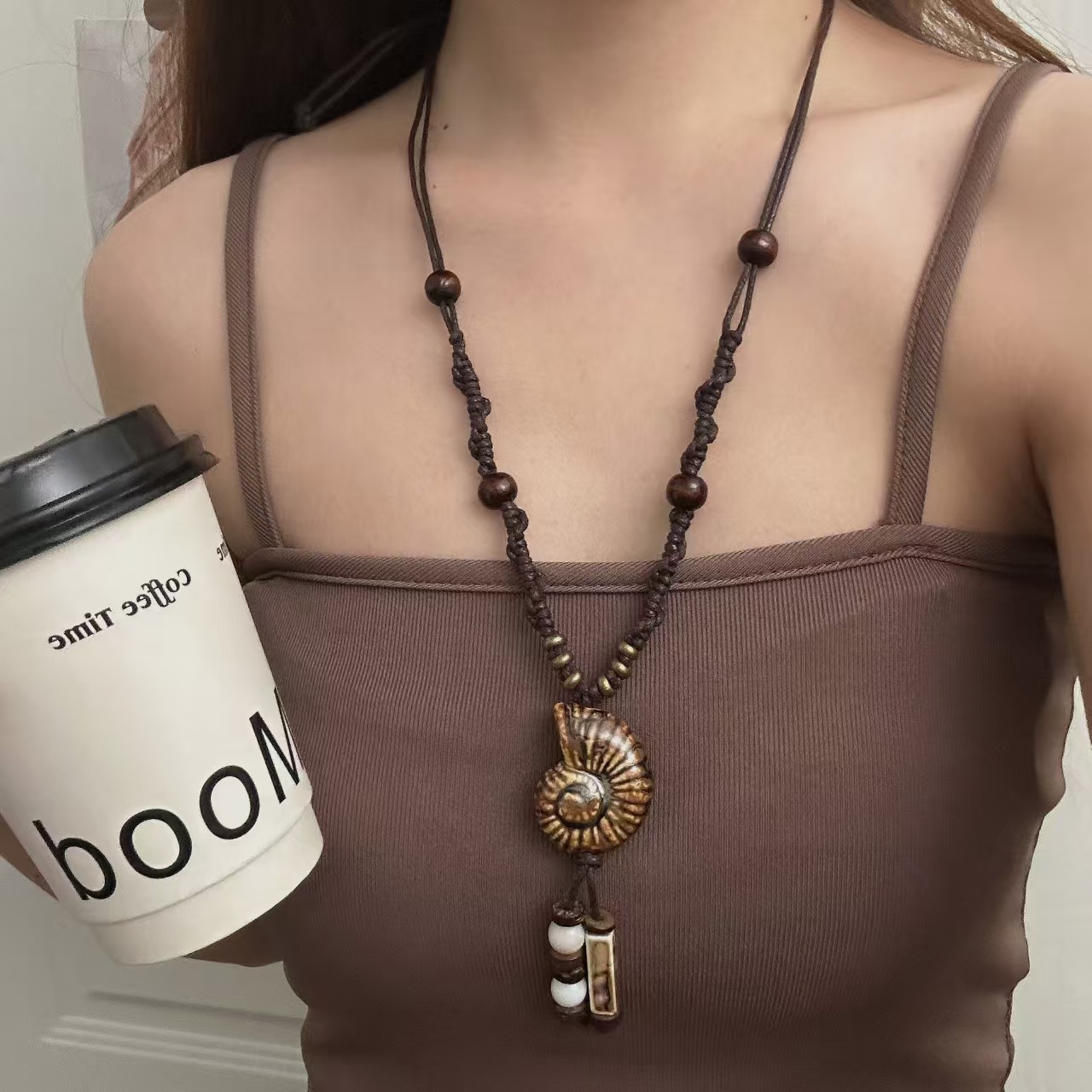 light coffee conch natural stone necklace x4676a