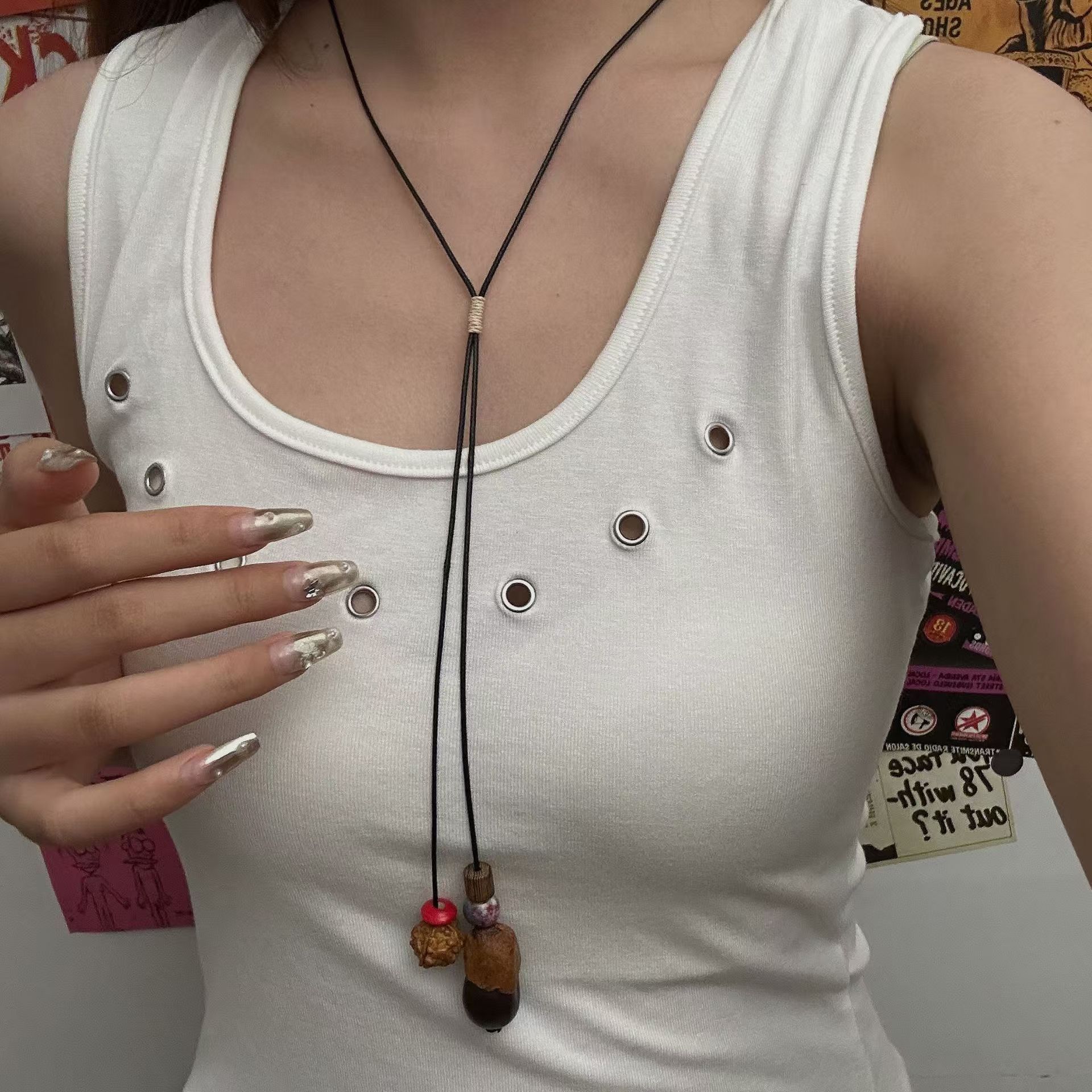 wooden sweater chain necklace x4517
