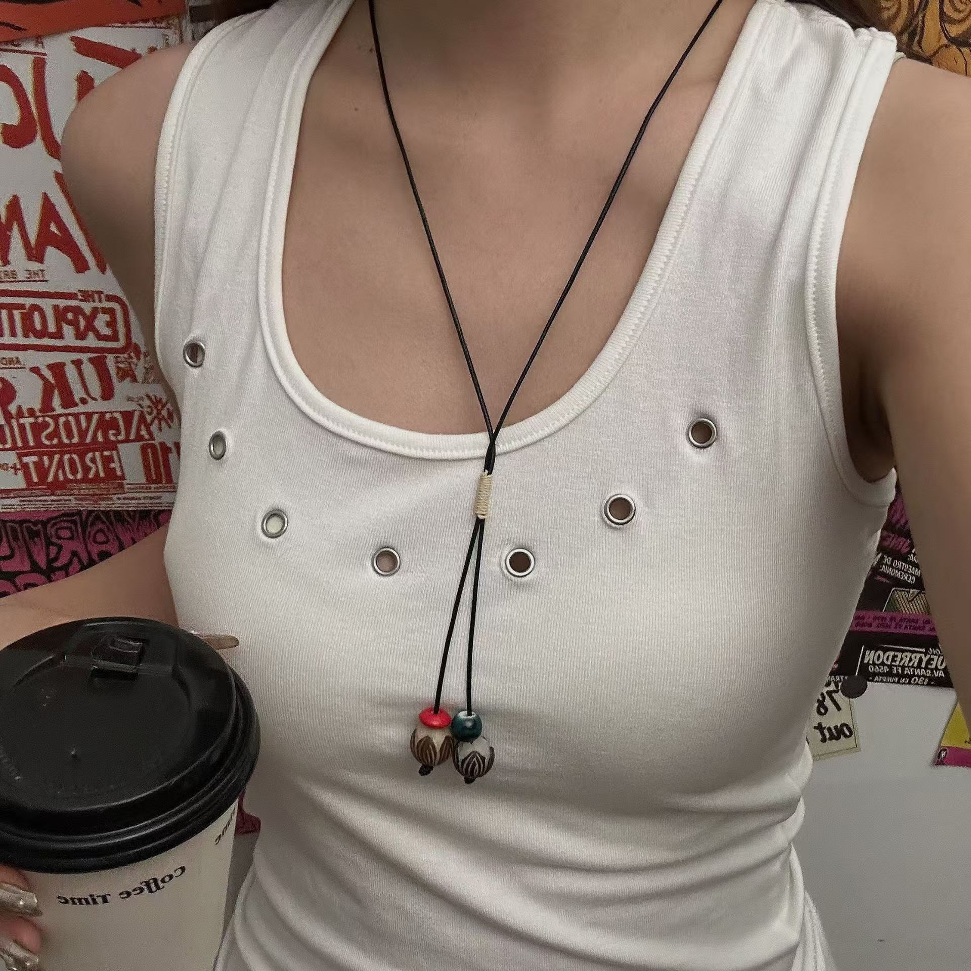 vacation style long necklace x3804