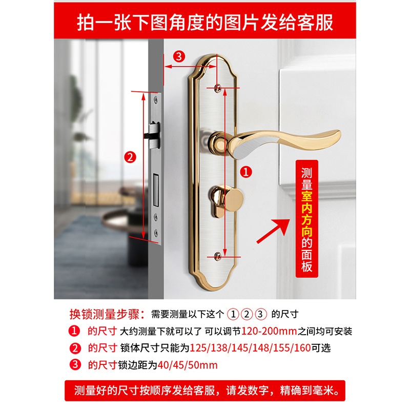 gold brushed face plate + handle (58 center distance) (excluding lock cylinder lock body)