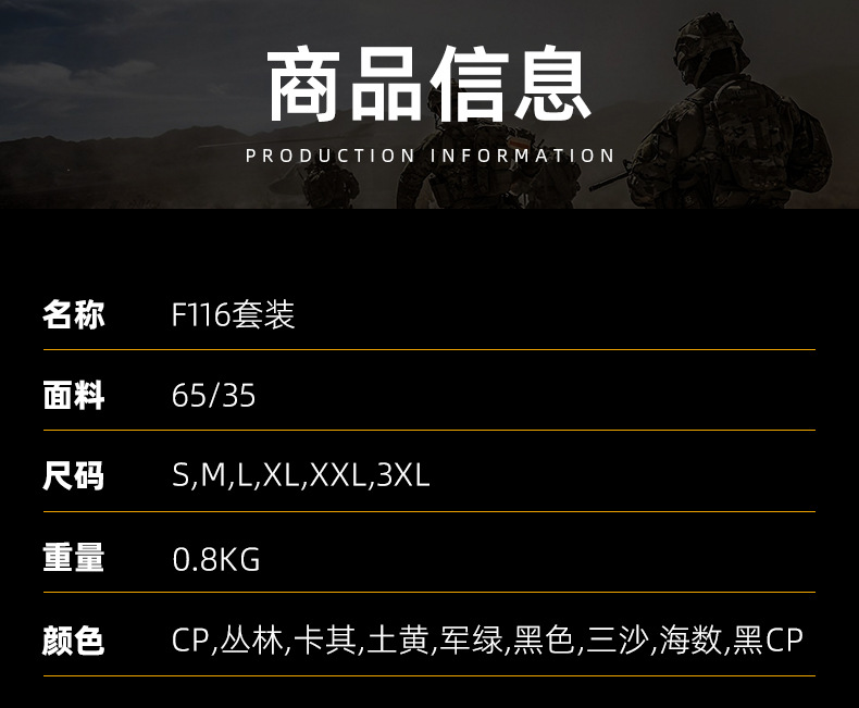 f116 camouflage clothing suit men's breathable and wearable outdoor tactics shirt suit jungle camouflage combat uniform battle suit
