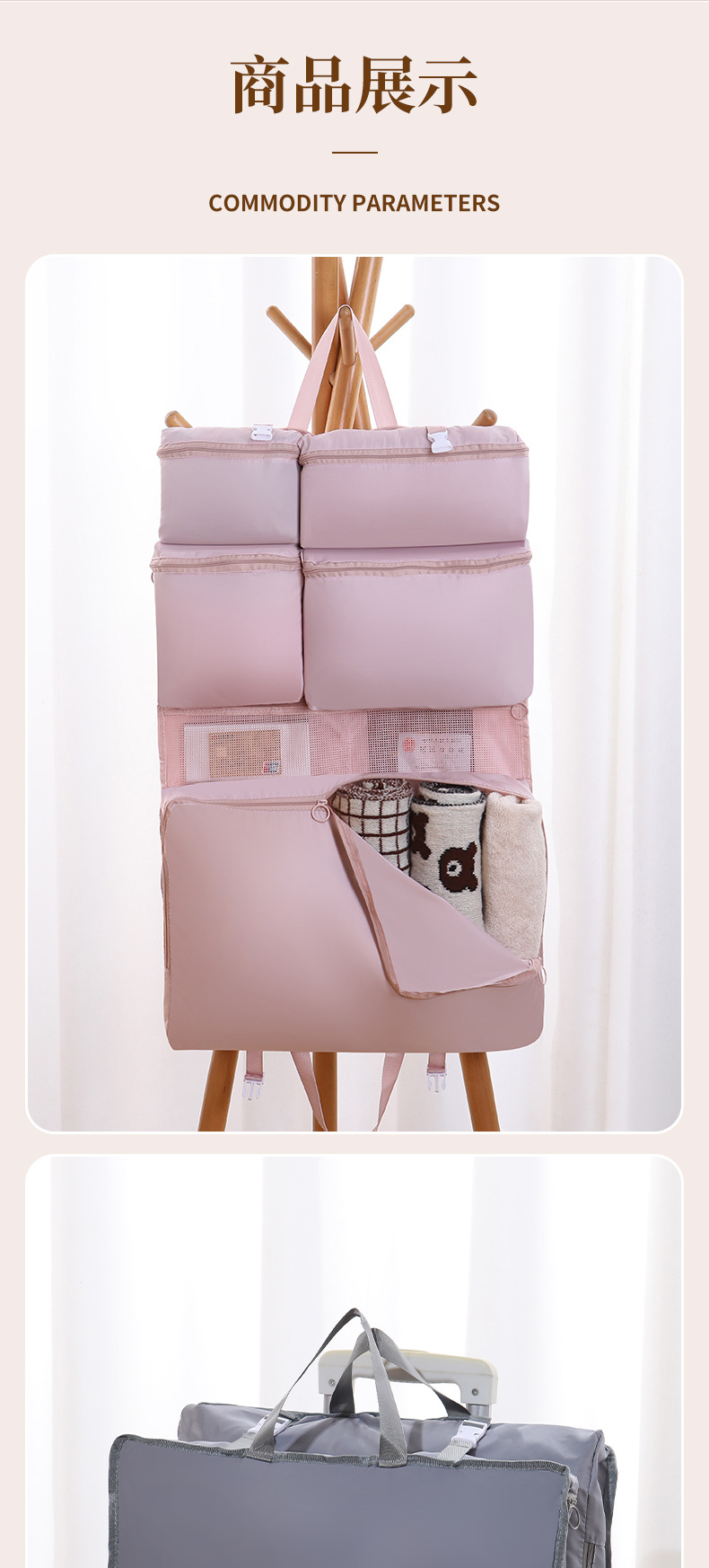 beige 7-in-one travel bag